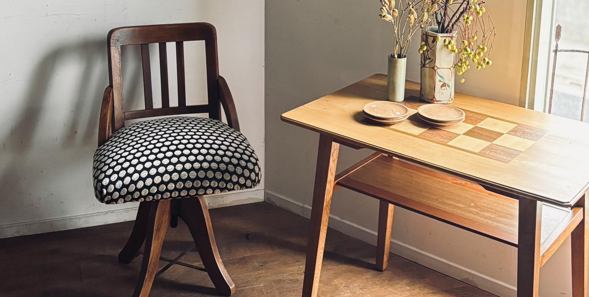 - 「テーブル」2点「水屋」「回転いす」「ベンチ」が仕上がりました