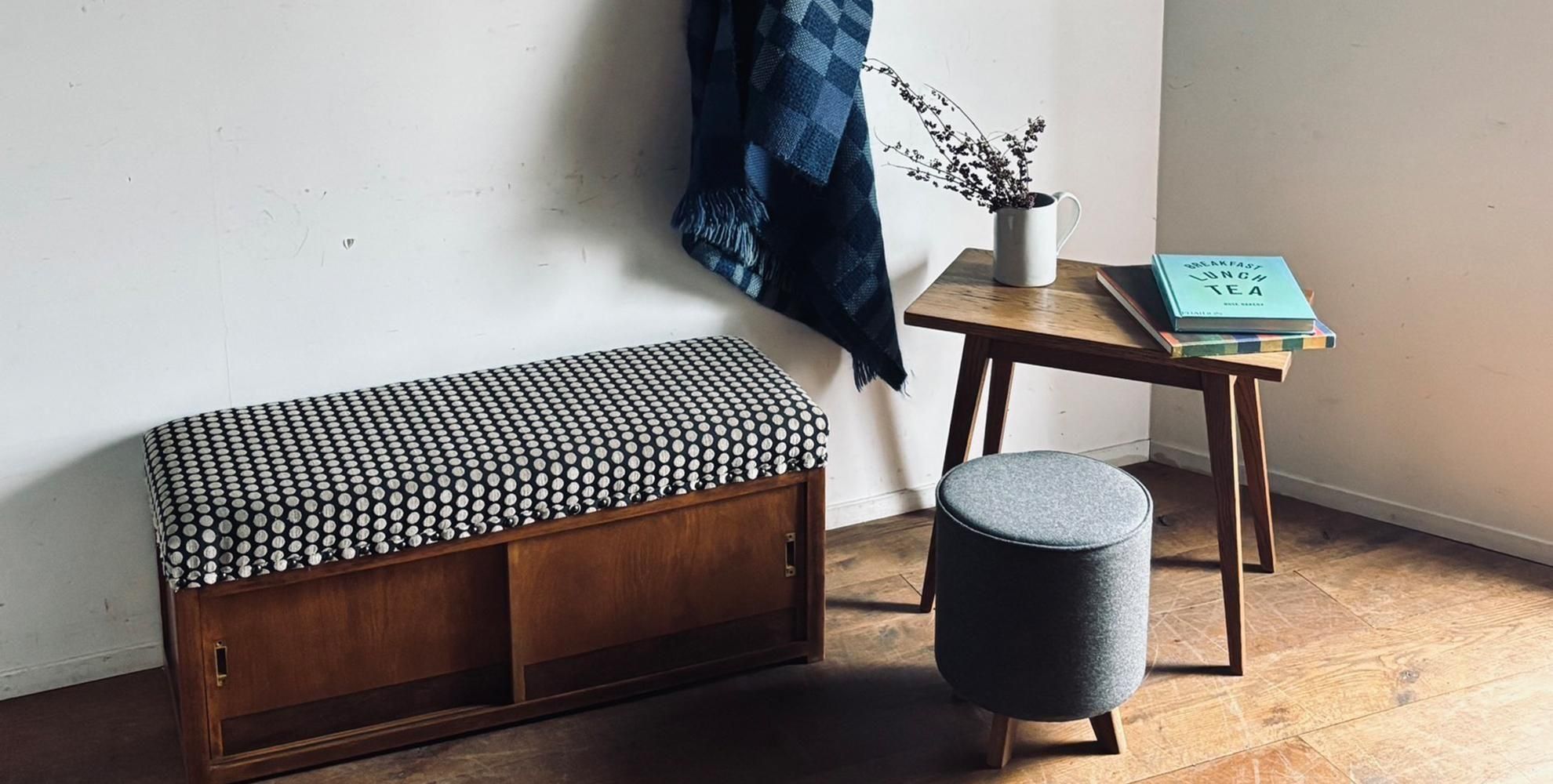 SOLD OUT座面の下が収納になっている、古いベンチ