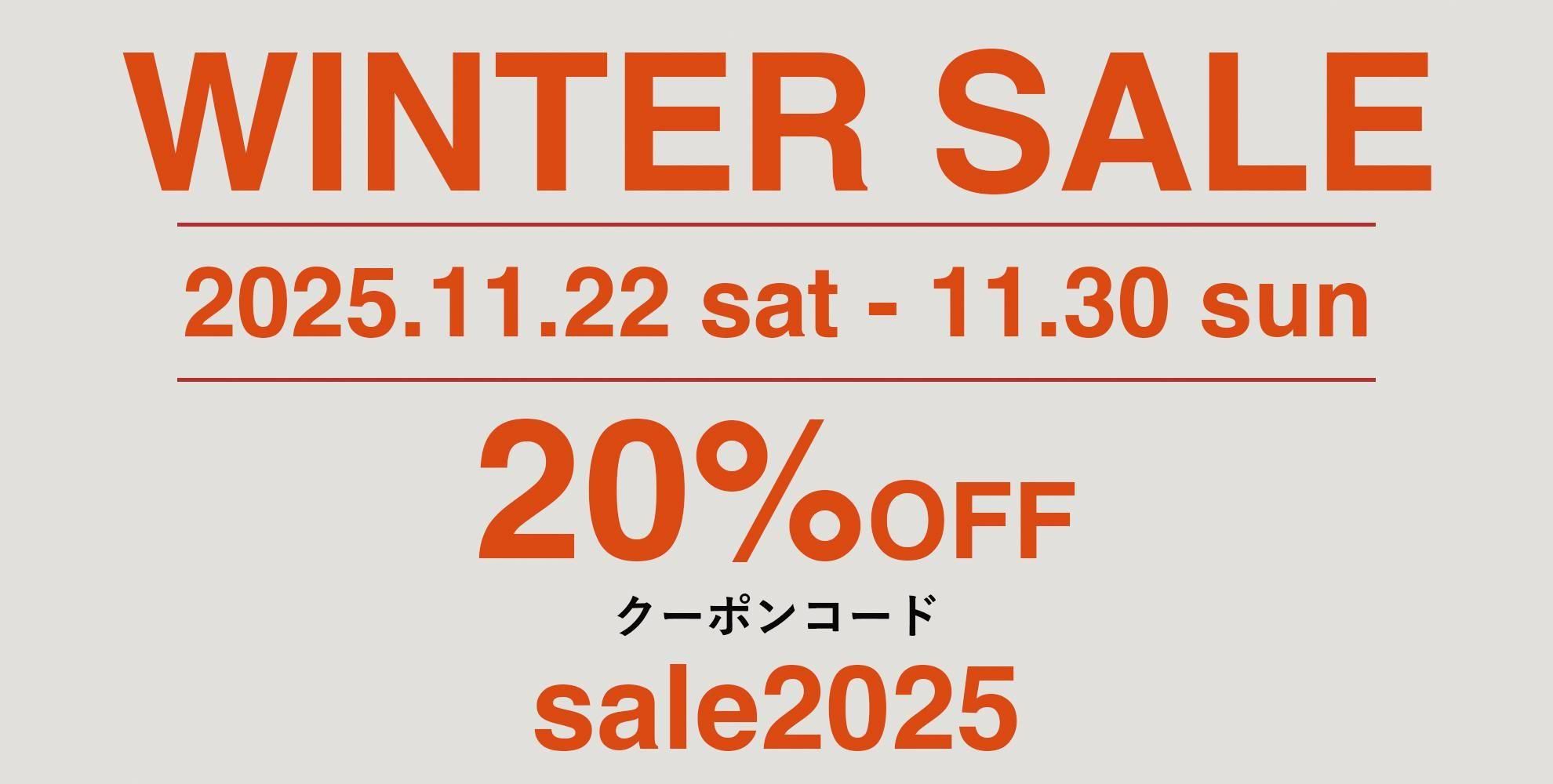 - 11/22(土)〜11/30(日)ウィンターセール開催中!対象商品20%OFF