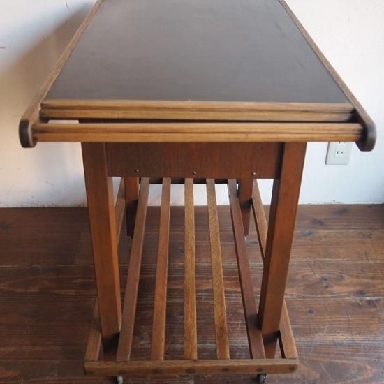 こちらも珍しいデザインの「ワゴンテーブル」。落ち着いた雰囲気。