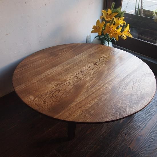 直径990mmの大きなサイズの「丸ちゃぶ台」。すっきりとした脚のデザインも素敵で天板は、穏やかなぬくもりのある落ち着いた印象。サイズは大人3〜4人で囲んでいただけます!状態もよく、ちゃぶ台は折りたたみができるので収納にも便利です。