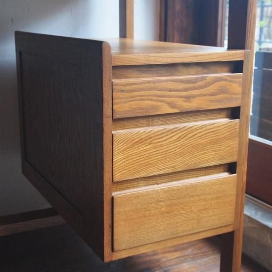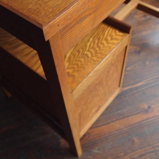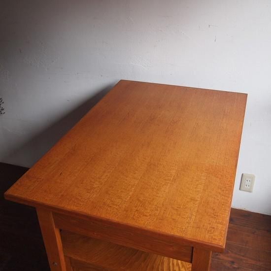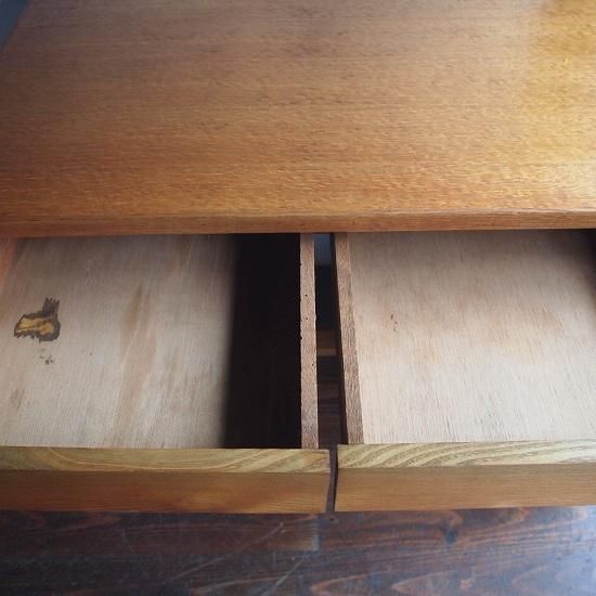 デザインがとてもきれいな「デスク」。机下に3杯、右サイドに3杯の「引き出し」がつき、ゆったりと作業をして頂けるサイズ。天板はやわらかく明るい木地色ですっきりときれいな印象です。材質は「タモ」。