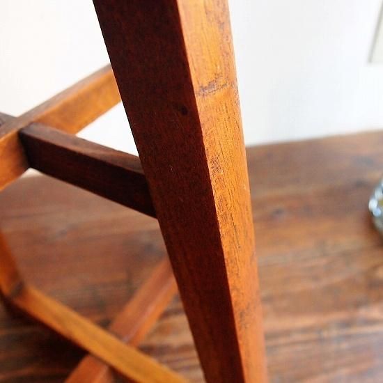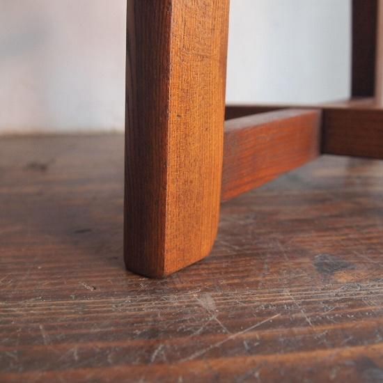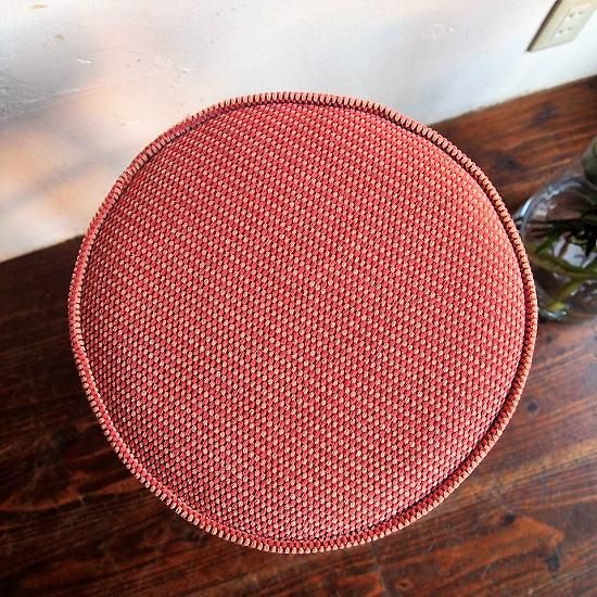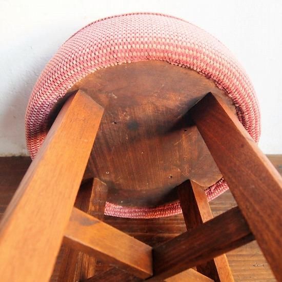 「欅」で造られた「スツール」。布地はデザイン模様の「ピンクベージュ」。しっかりとした脚にぽってりと分厚めの座面のデザイン、すっきりと可愛らしい表情です。座り心地もよく、すてきな印象です。
