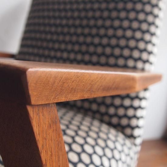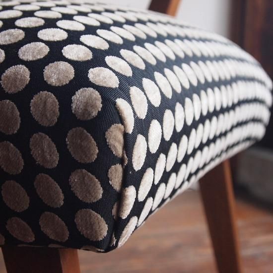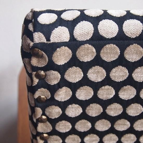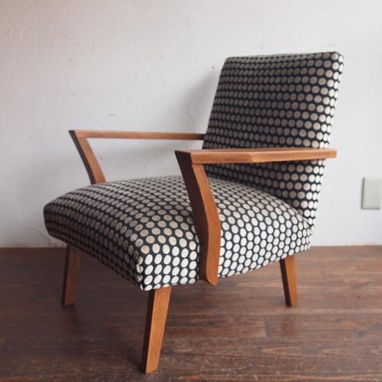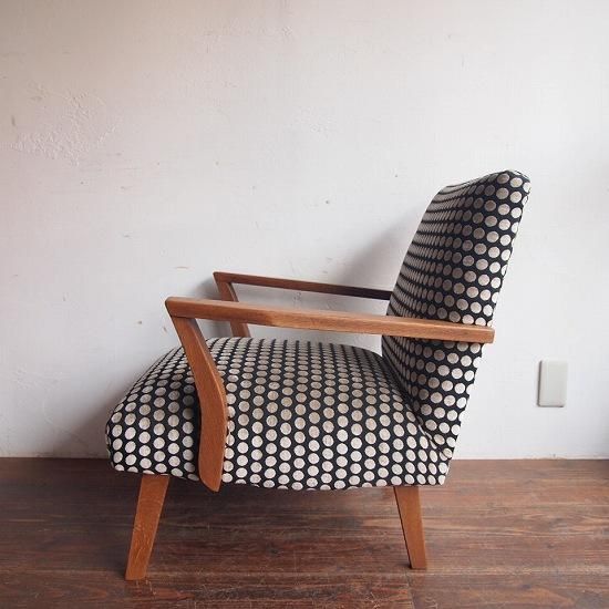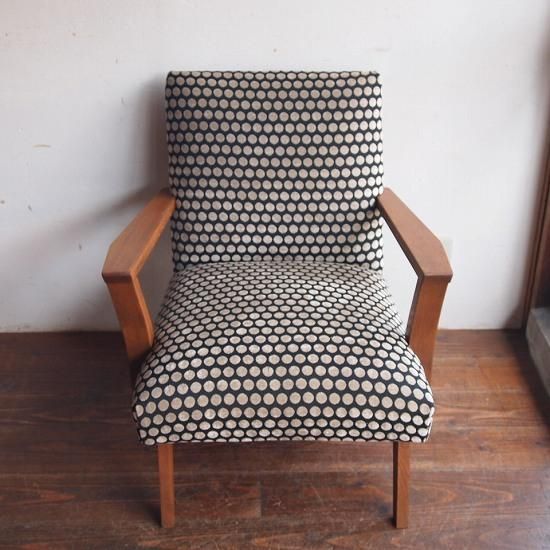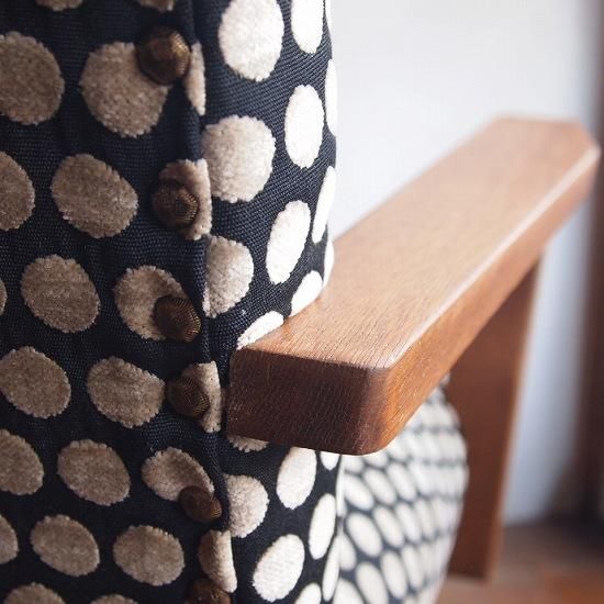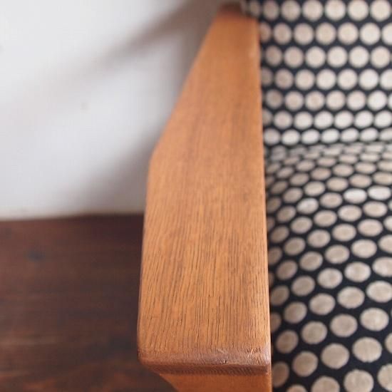 「楢」で造られた優しく落ち着いた木地色の「一人掛けソファー」。すっきりときれいなデザインで、ミニマムな印象です。しっかりとし造りで座り心地も良く、布地は「ドット」の布地でお部屋の雰囲気を変えてくれそうですね