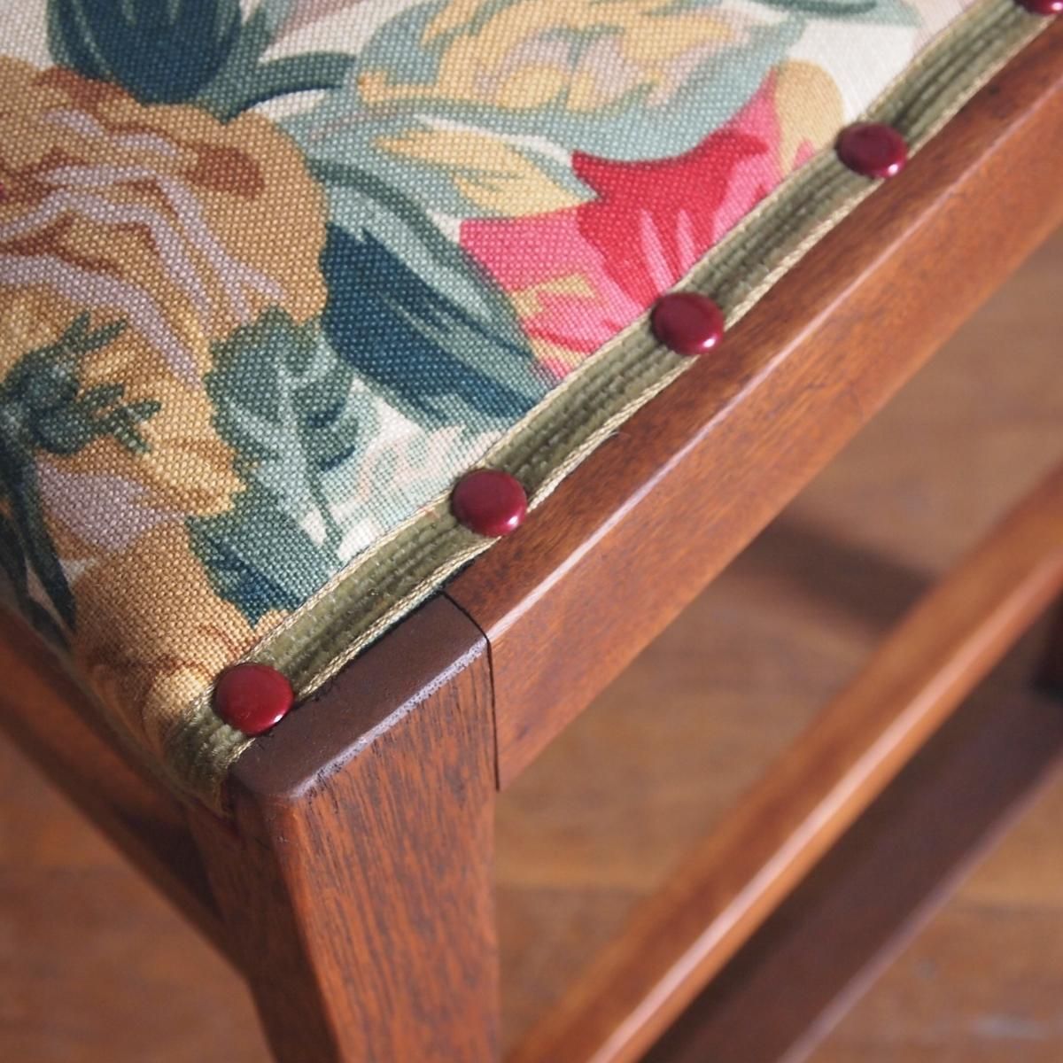 イギリスの花柄のファブリックを使った「スツール」。大胆で華やかなファブリックで、大ぶりのお花の部分を張りました。素敵な春らしい印象で、お部屋に表情を出してくれそうですね。