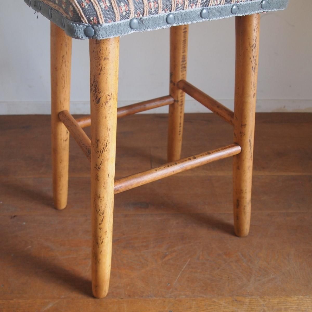 すっきりと柔らかな印象の「角スツール」。ファブリックは、ヨーロッパのデットストック。
