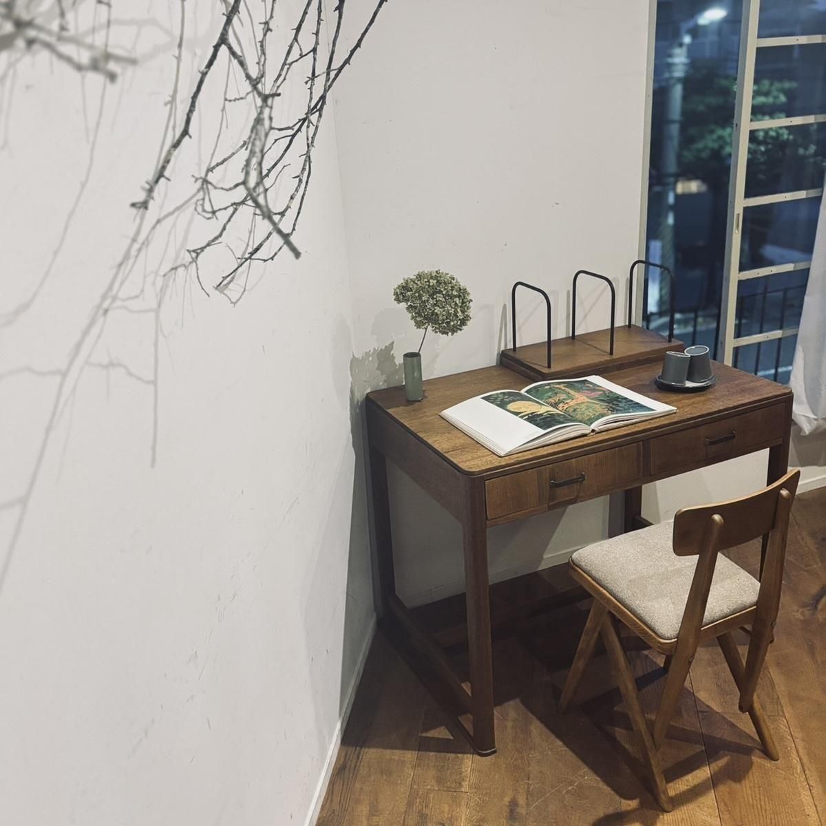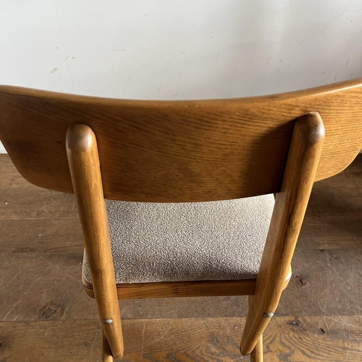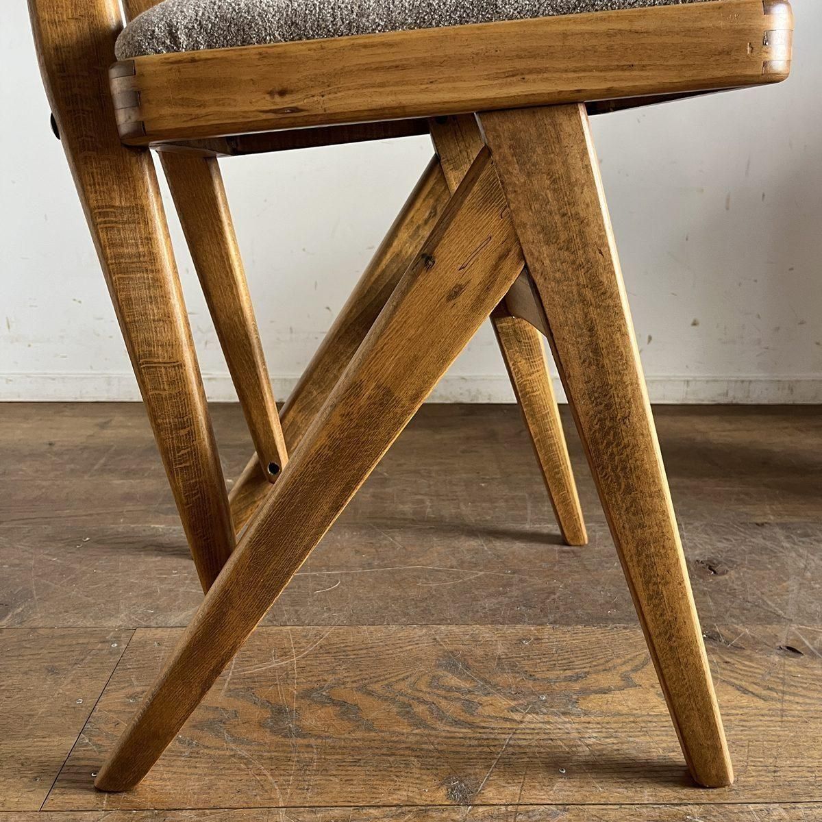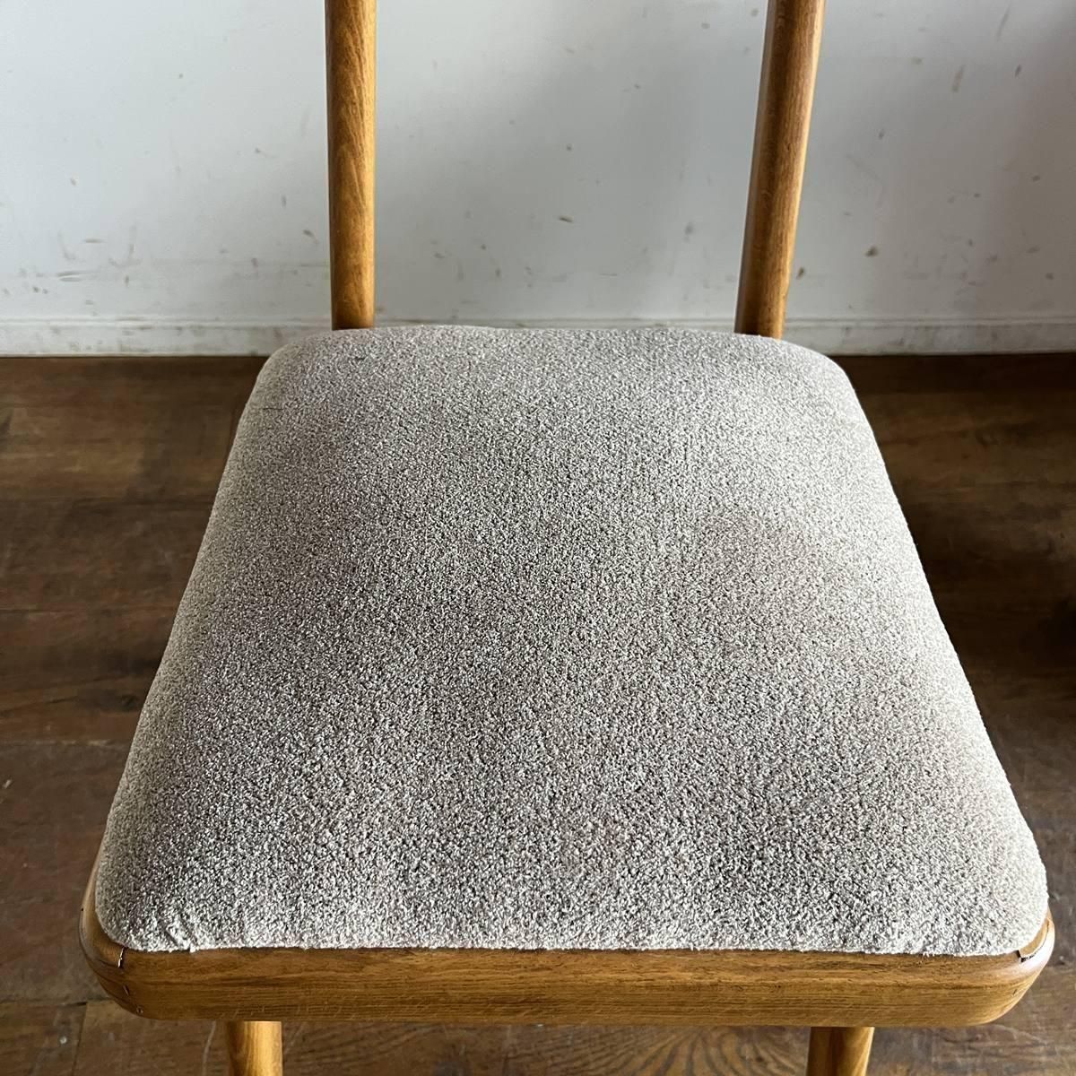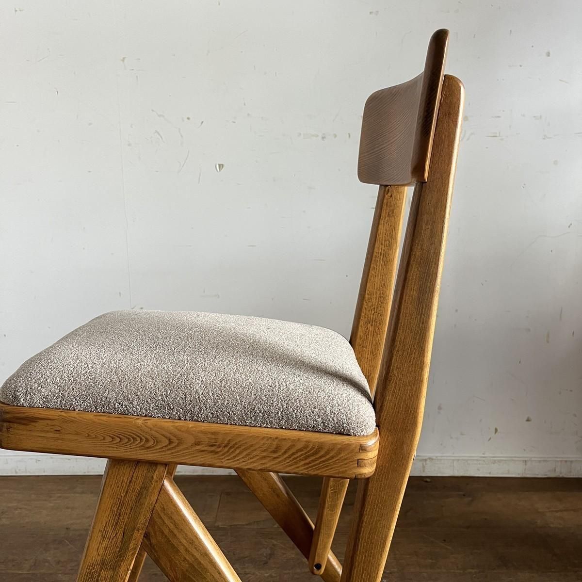 座面は、落ち着いたトーンのファブリックに張り替え済みで、ダイニングチェアとしてはもちろん、デスク用や来客用にも。