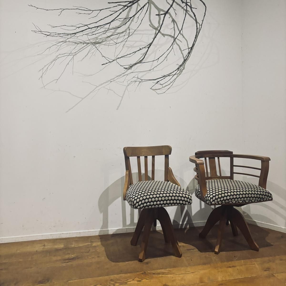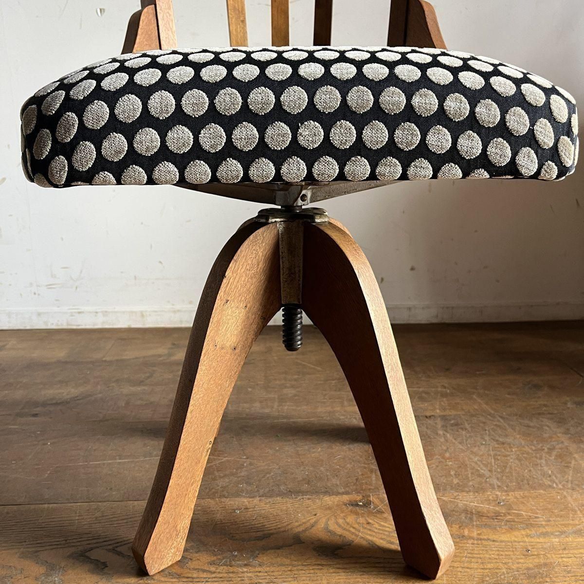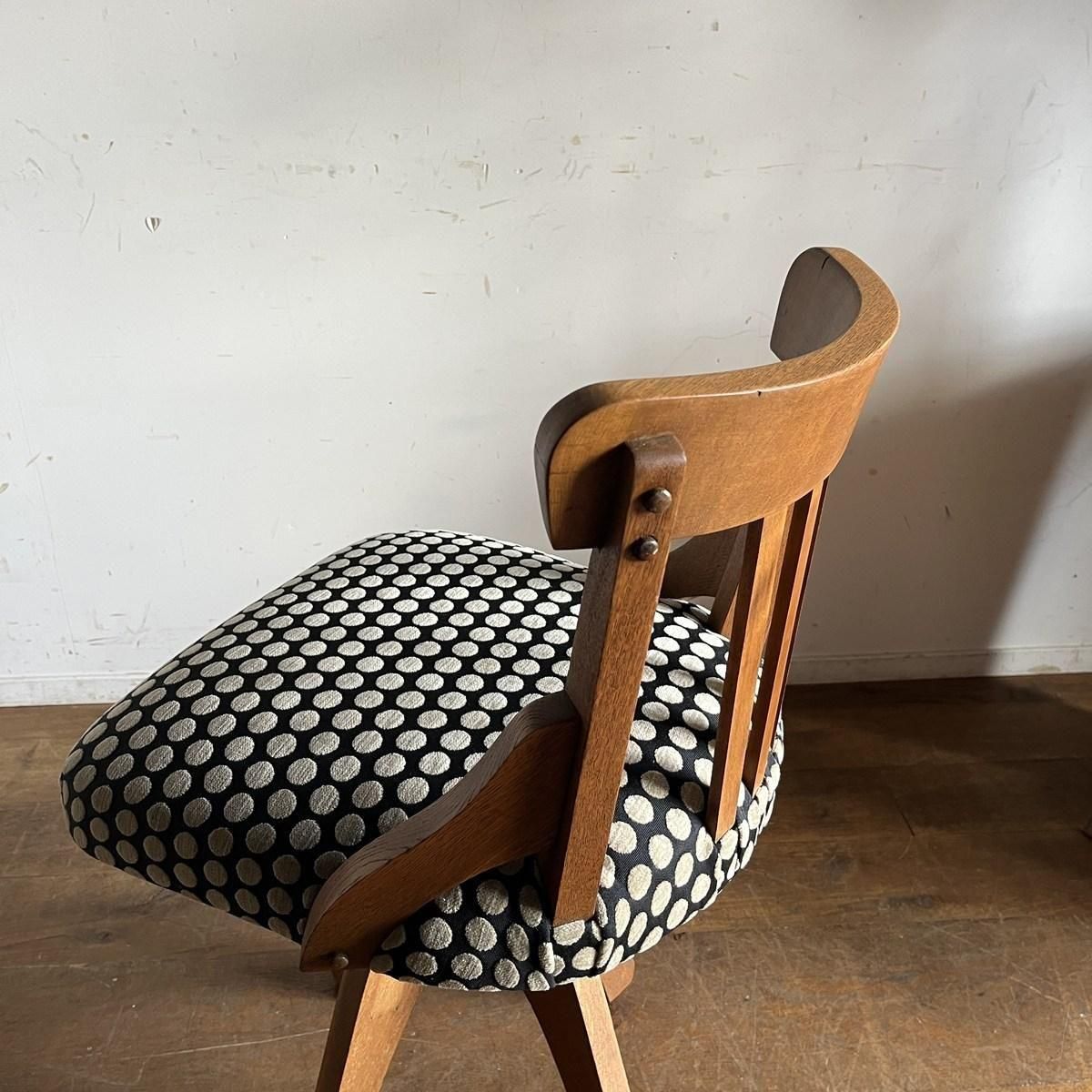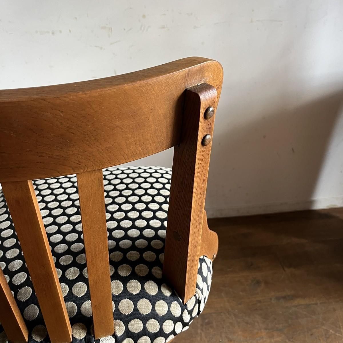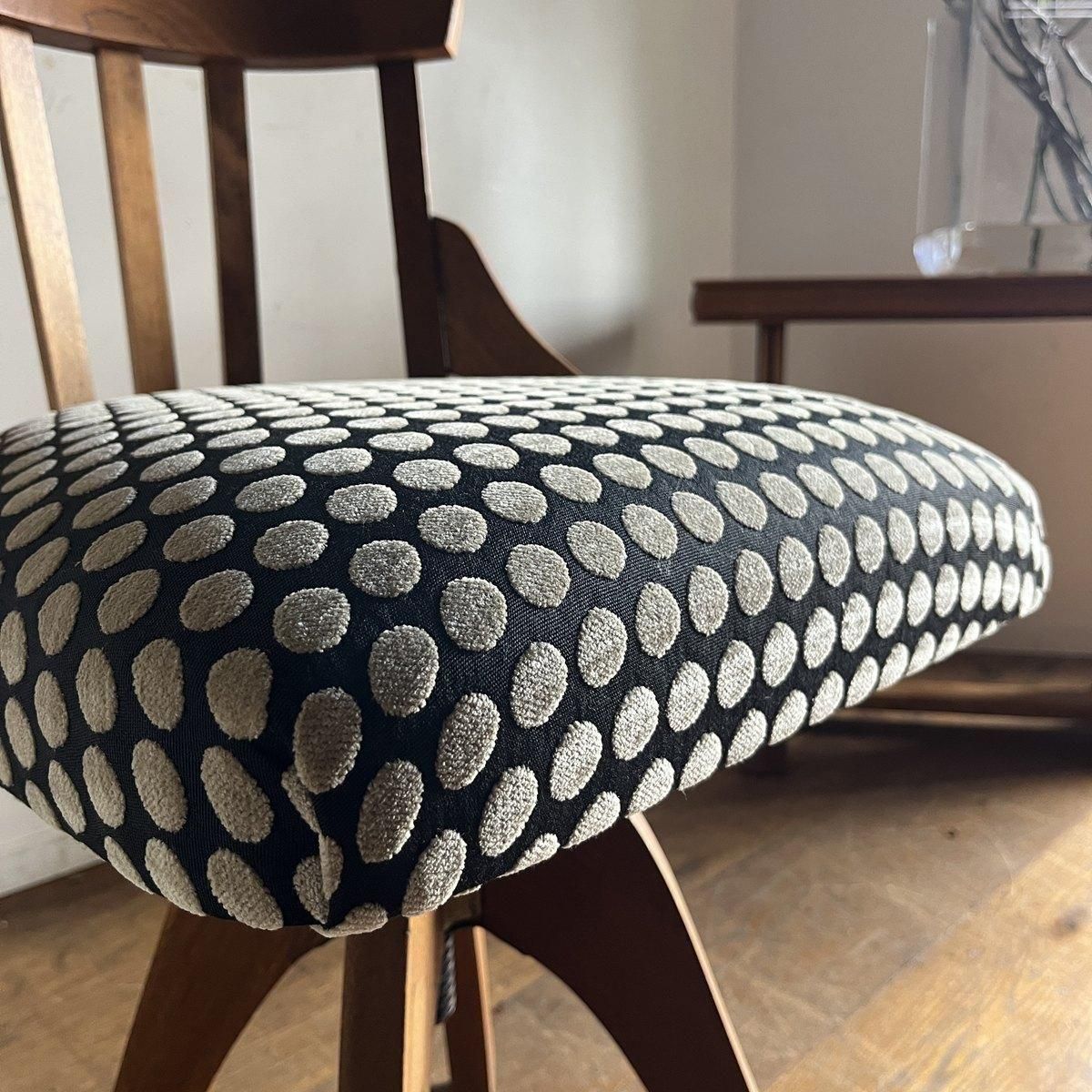 座面は新しく張り替え済みで、クラシックなドット柄、どんなお部屋にも馴染んでくれます。