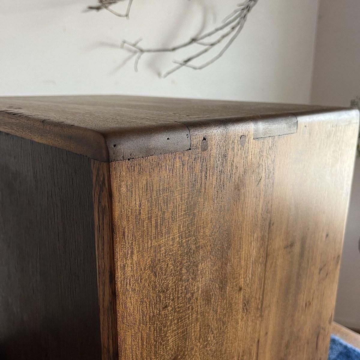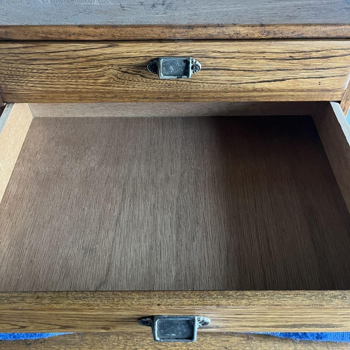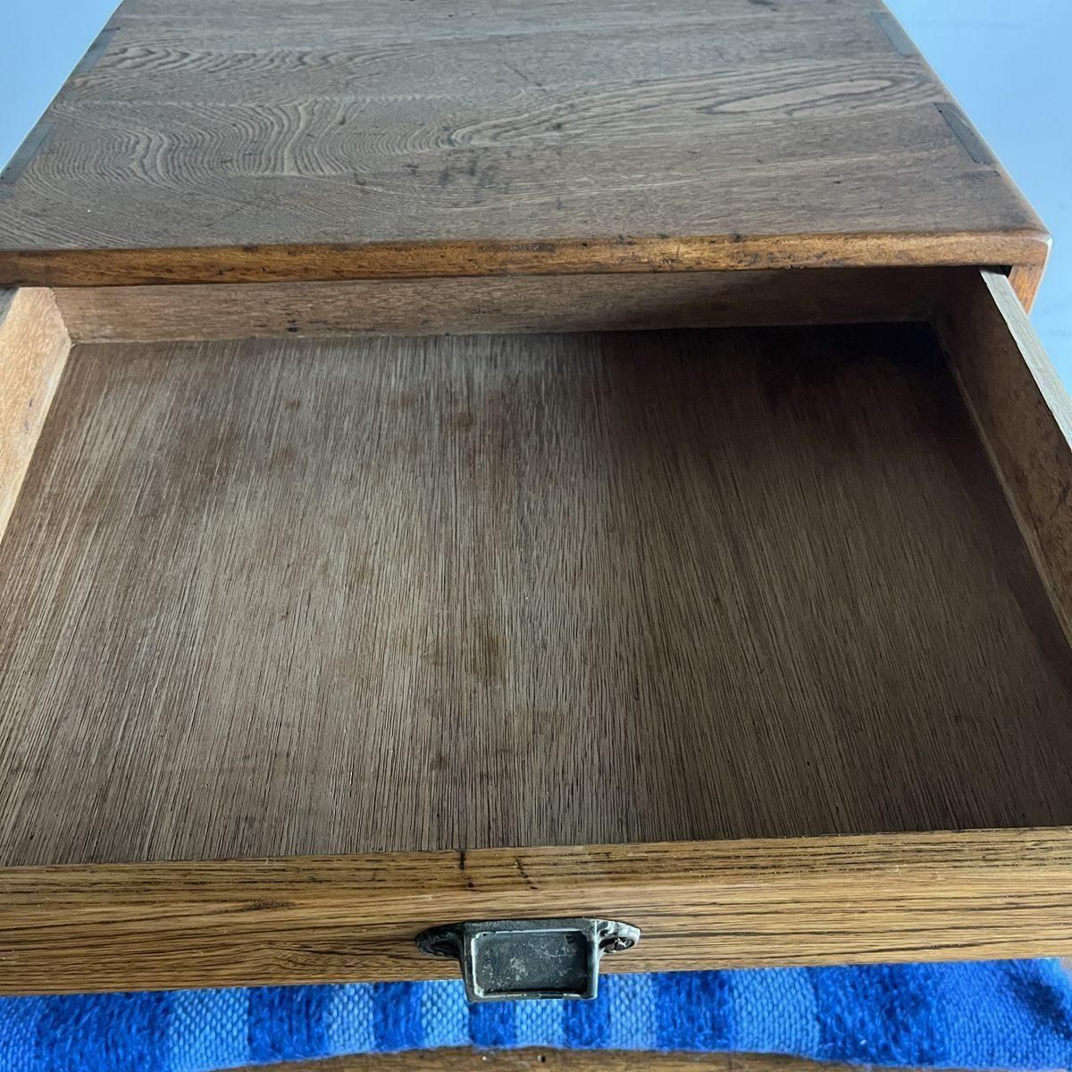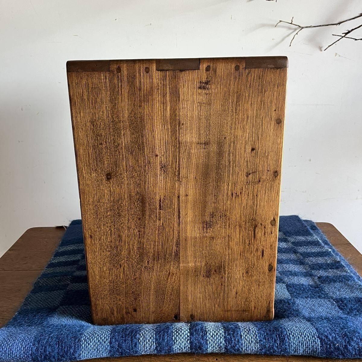 五段の引き出しで、真鍮の小さな取っ手が程よいアクセントになっています。全体のラインもすっきりと整い、和洋どちらの空間にも自然と馴染んでくれそうです。細かな文具や裁縫道具、手紙などの整理にぴったりのサイズ感。引き出しの開閉もスムーズで、状態も良好です。