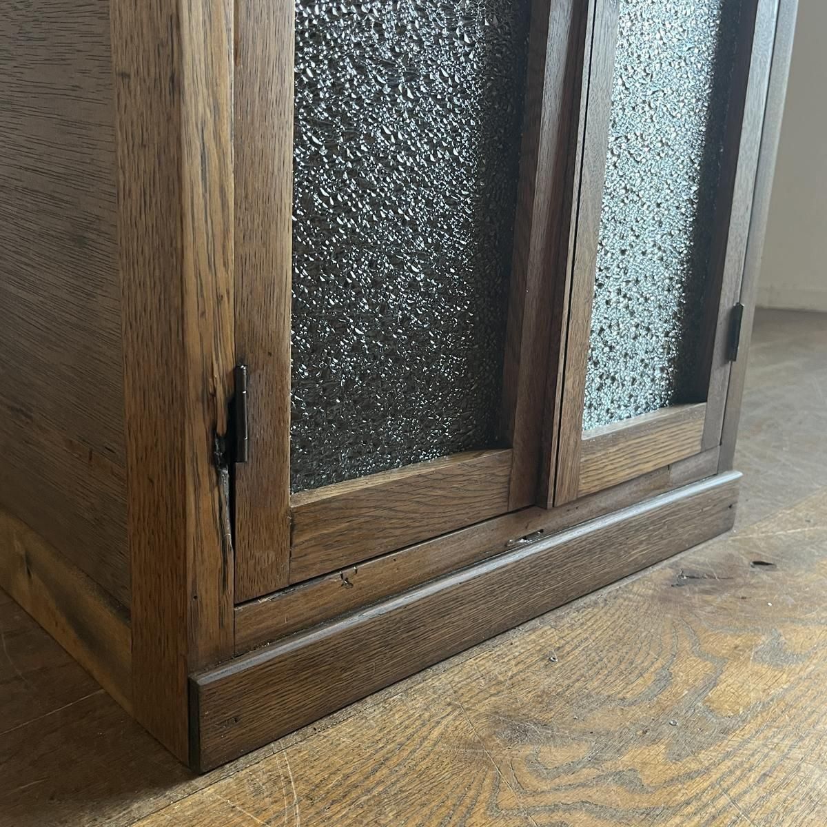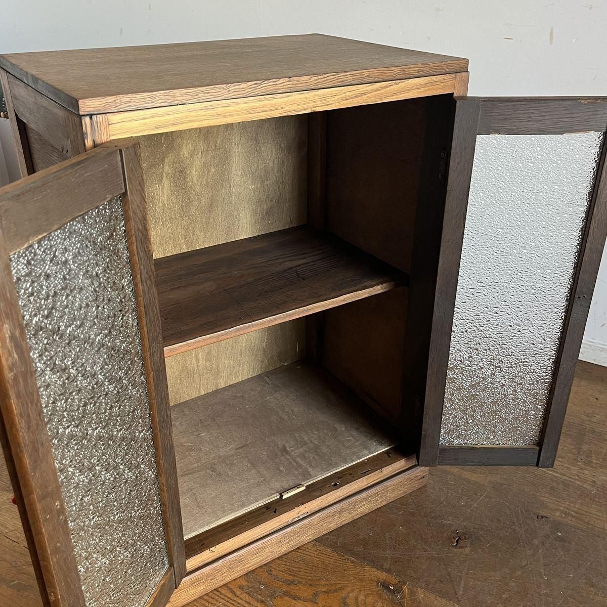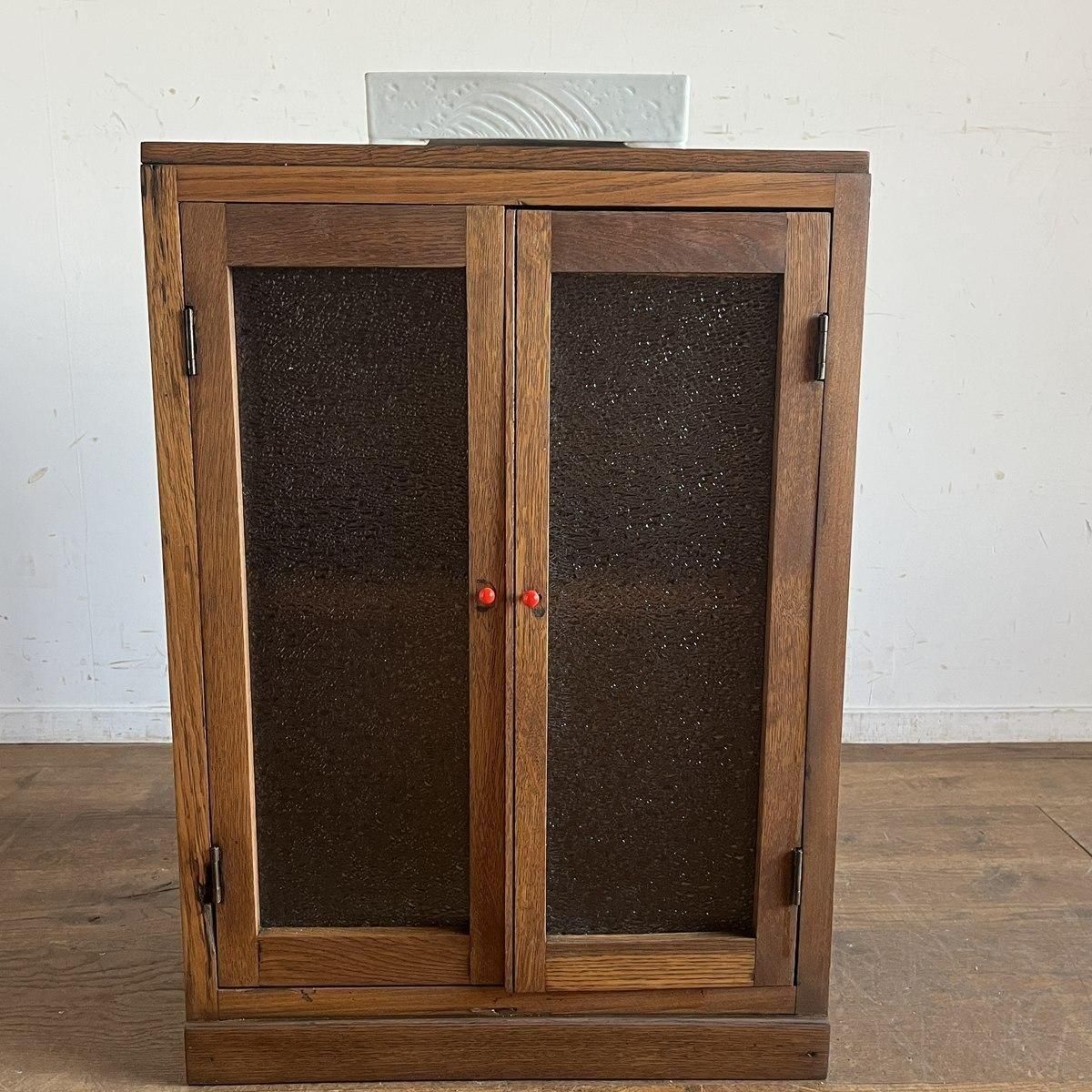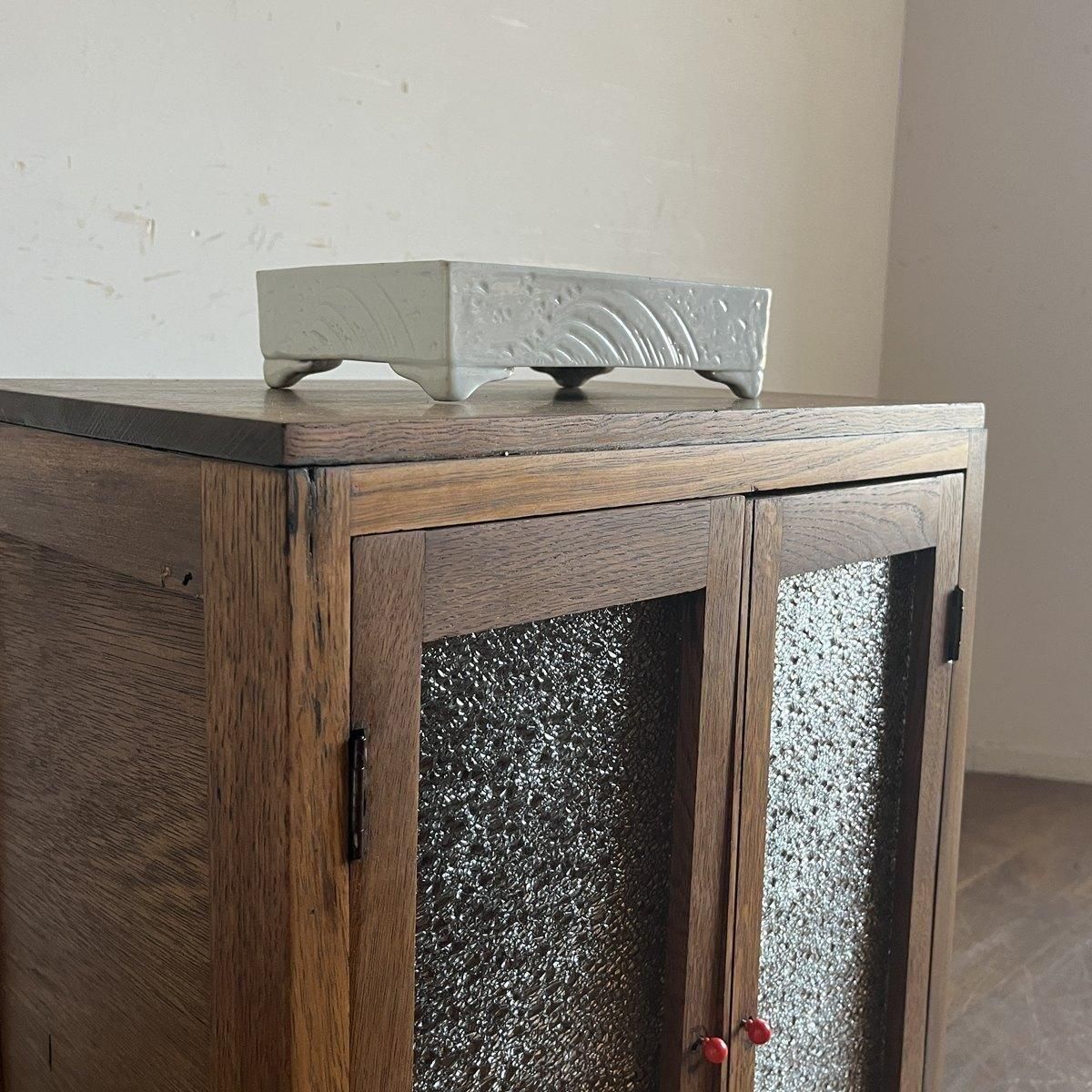 落ち着いた木味と古い硝子の扉が印象的な、小さなキャビネットです。
