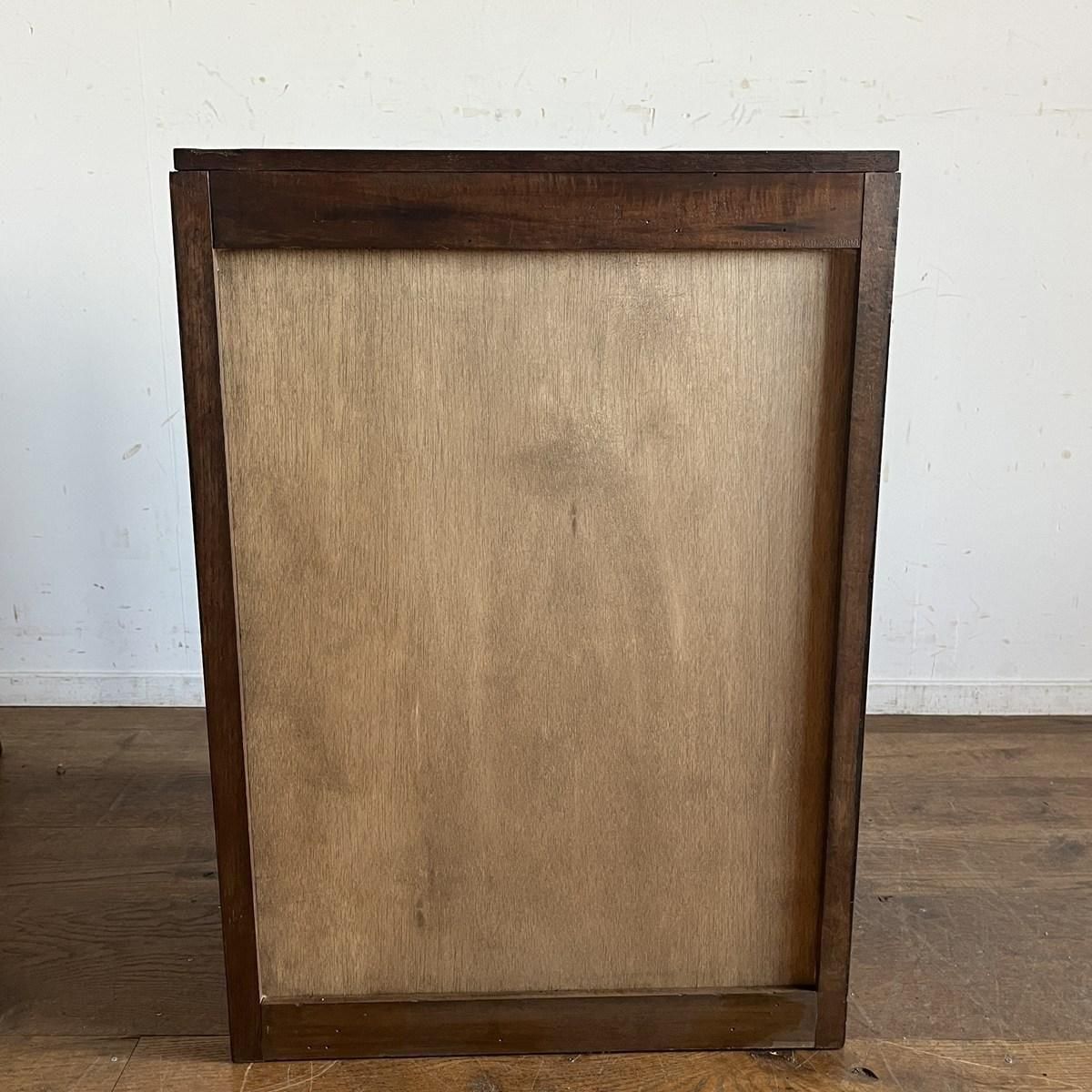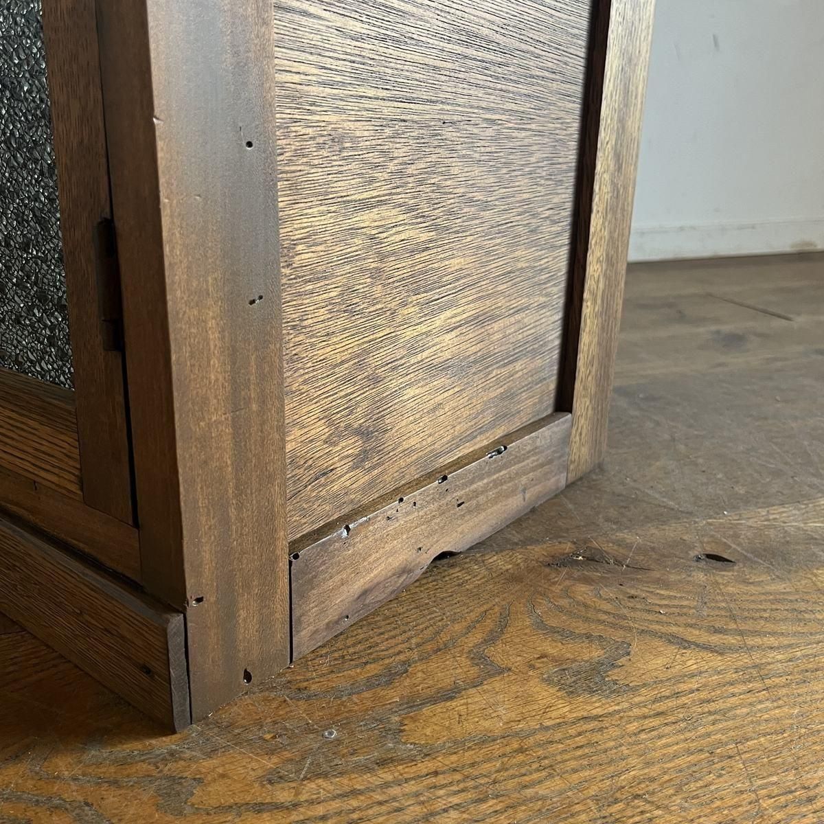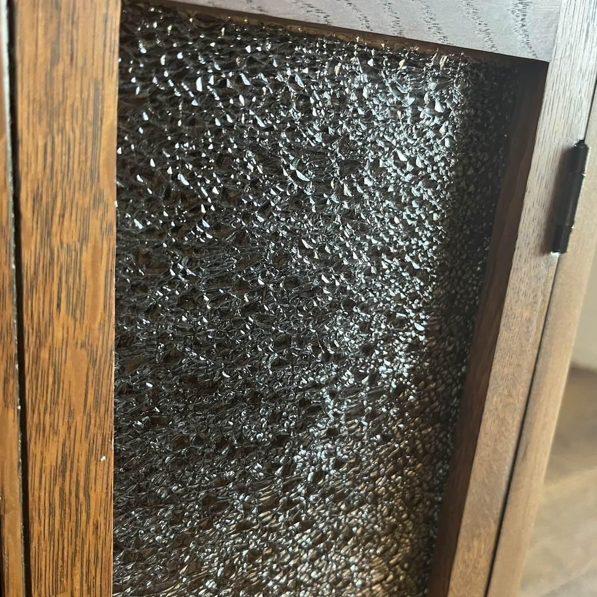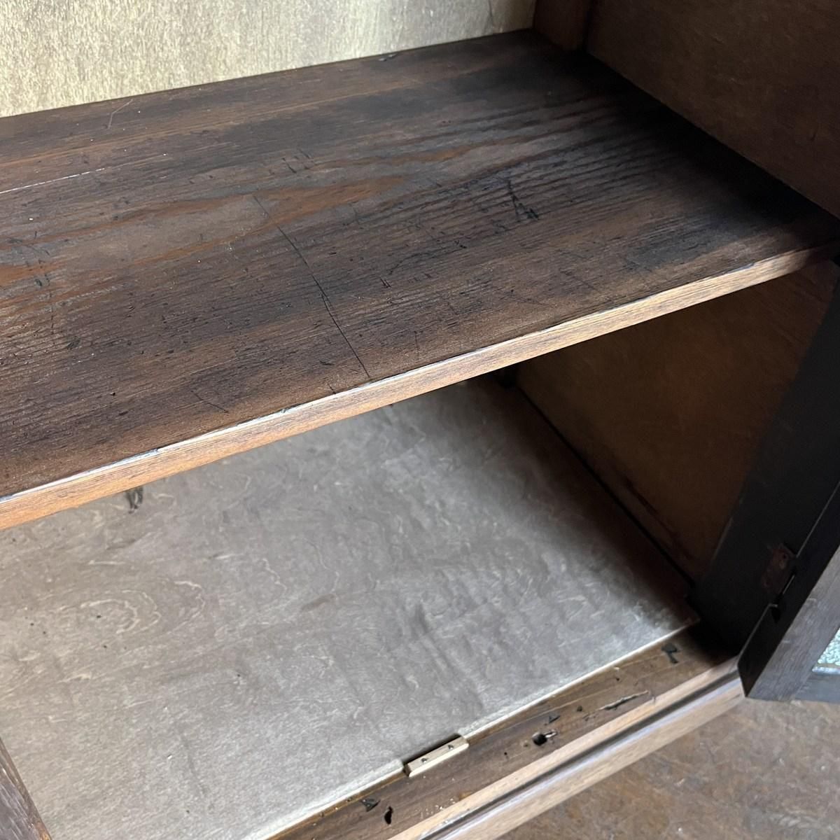 落ち着いた木味と古い硝子の扉が印象的な、小さなキャビネットです。