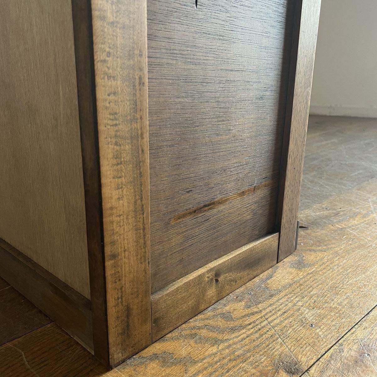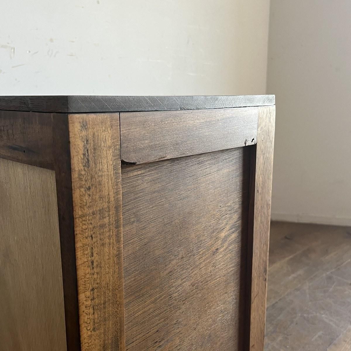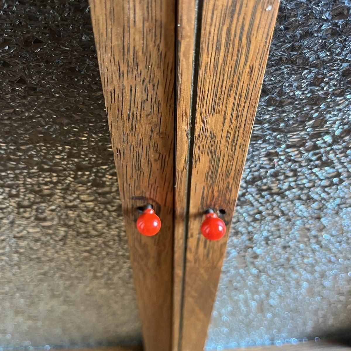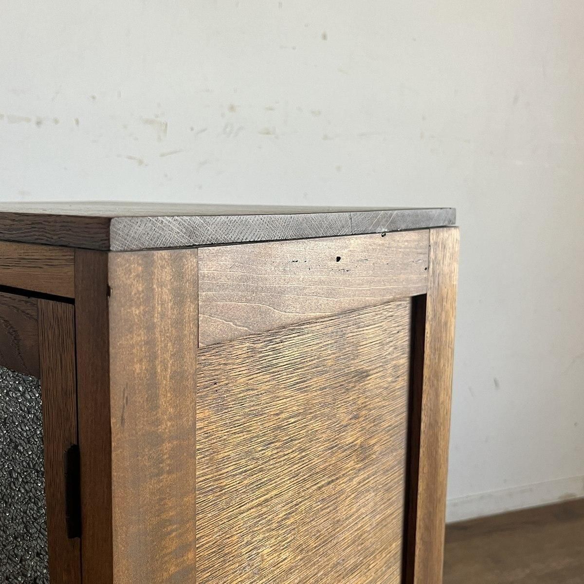 落ち着いた木味と古い硝子の扉が印象的な、小さなキャビネットです。