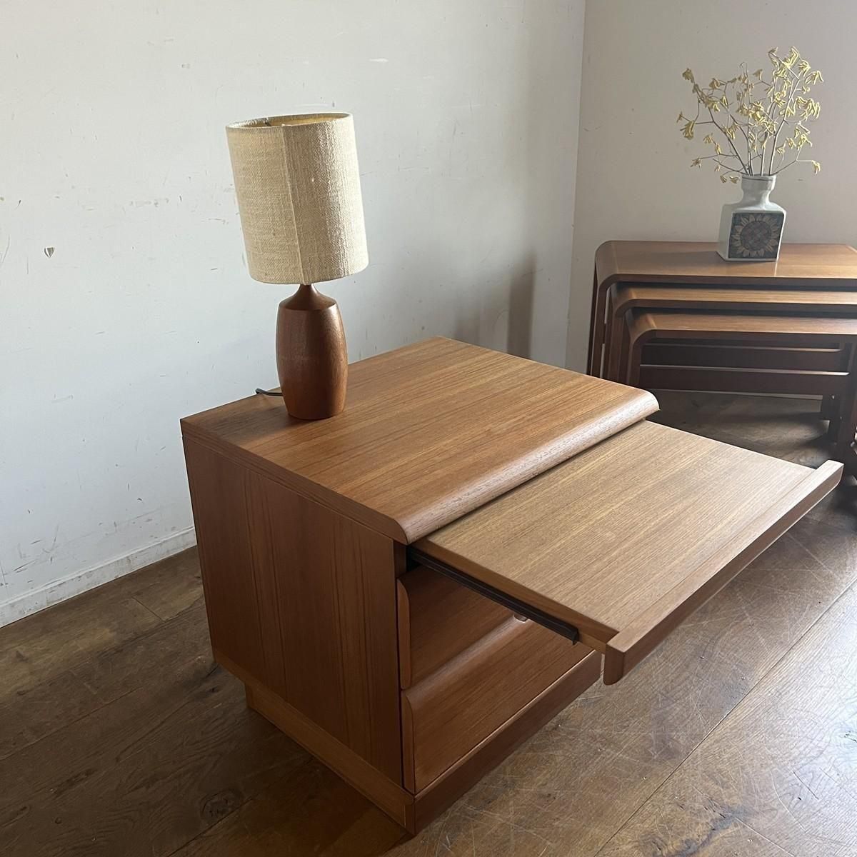 引き出しは2段、それぞれスムーズに開閉でき、収納力もあり、一番上の段はスライド式の引き台になっていて、ちょっとした作業やお茶の時間にも便利。