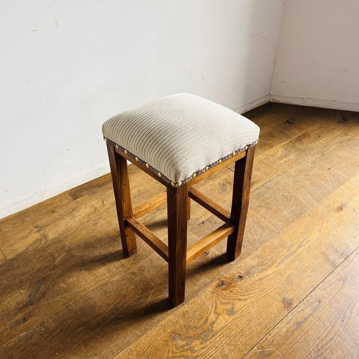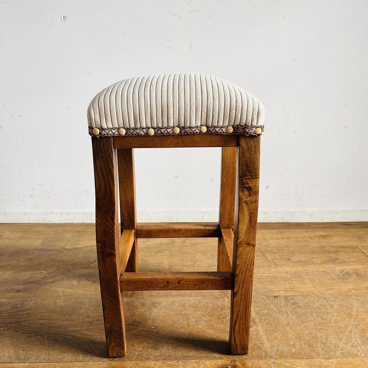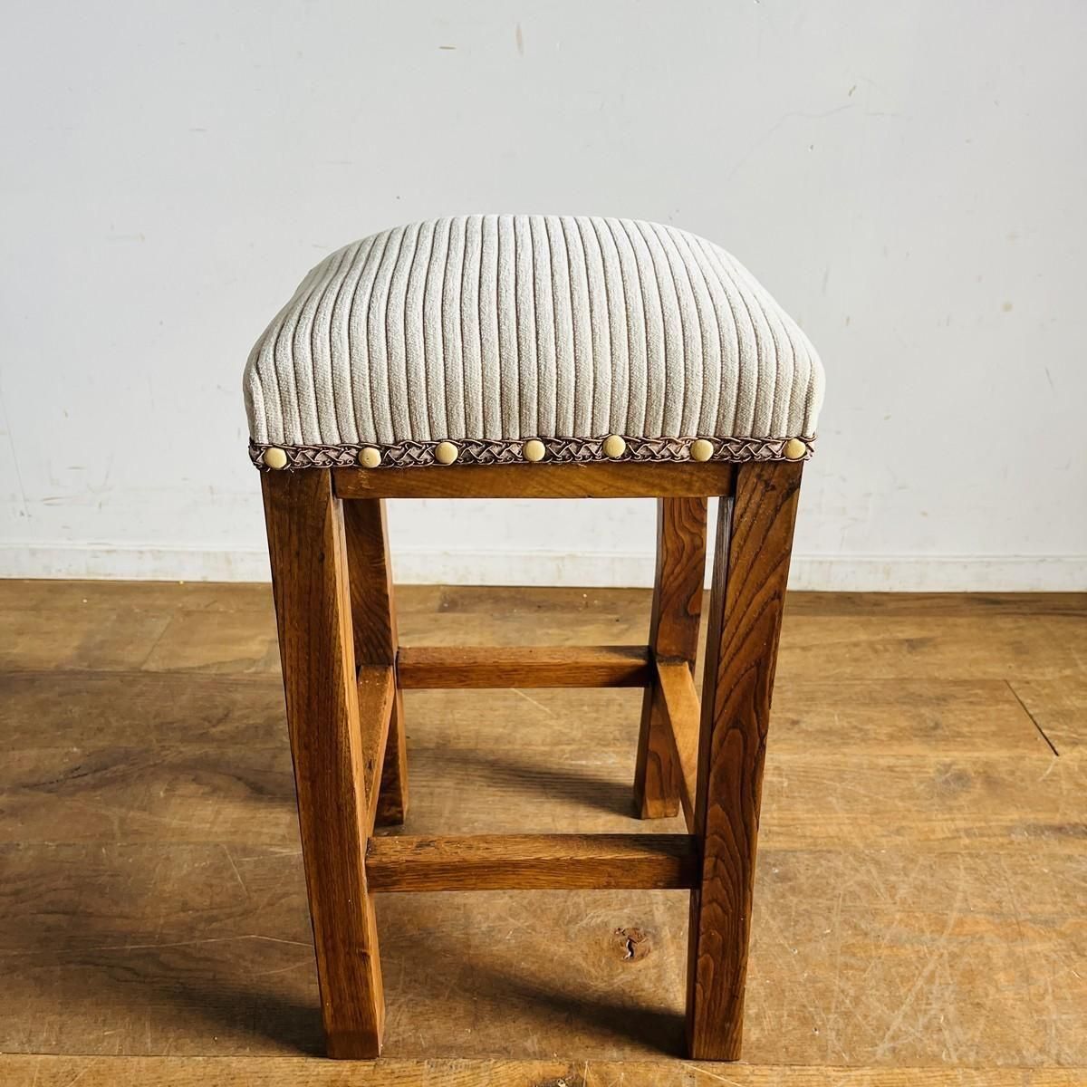 ベルギー製コーデュロイ生地を張りなおしたブナの正方形角スツール