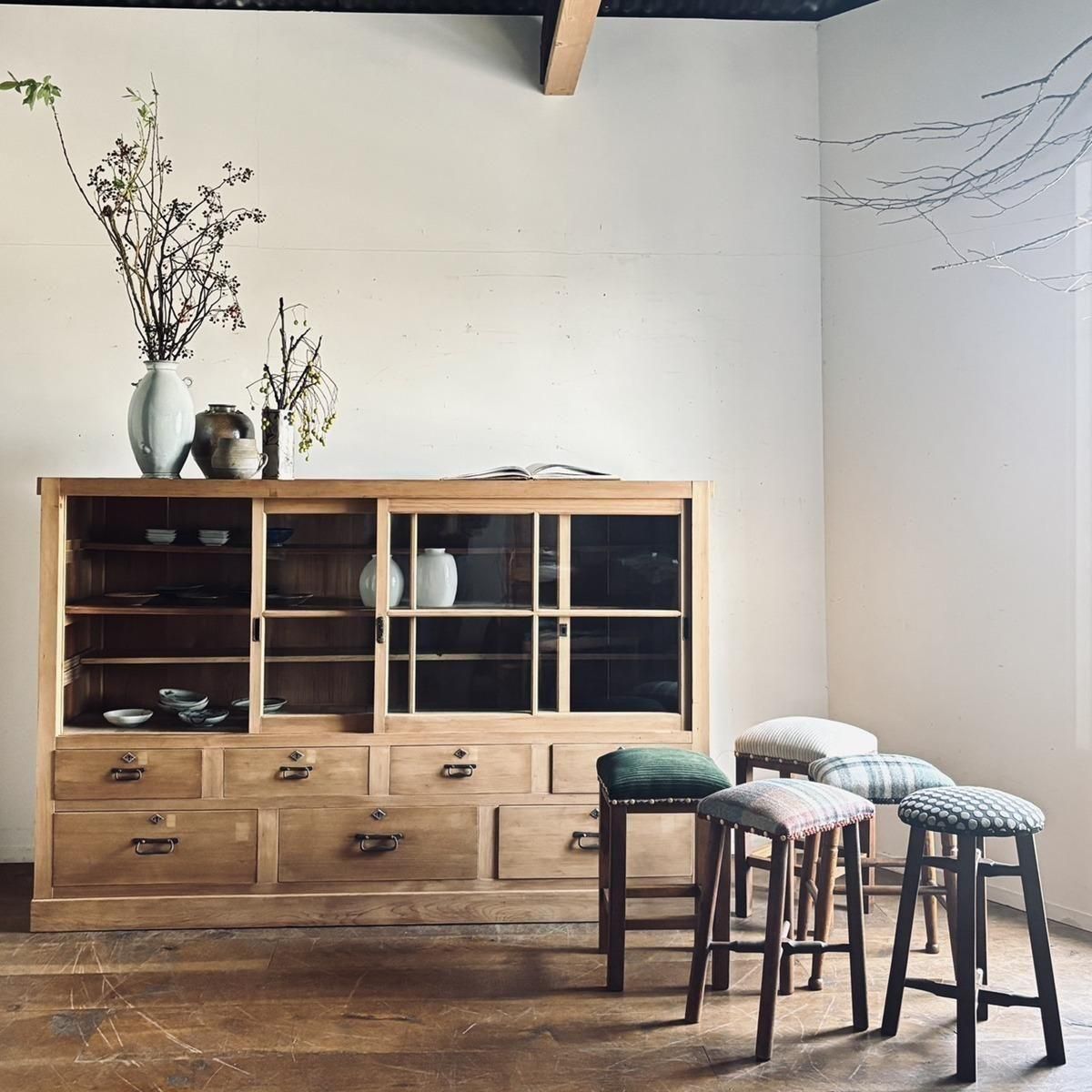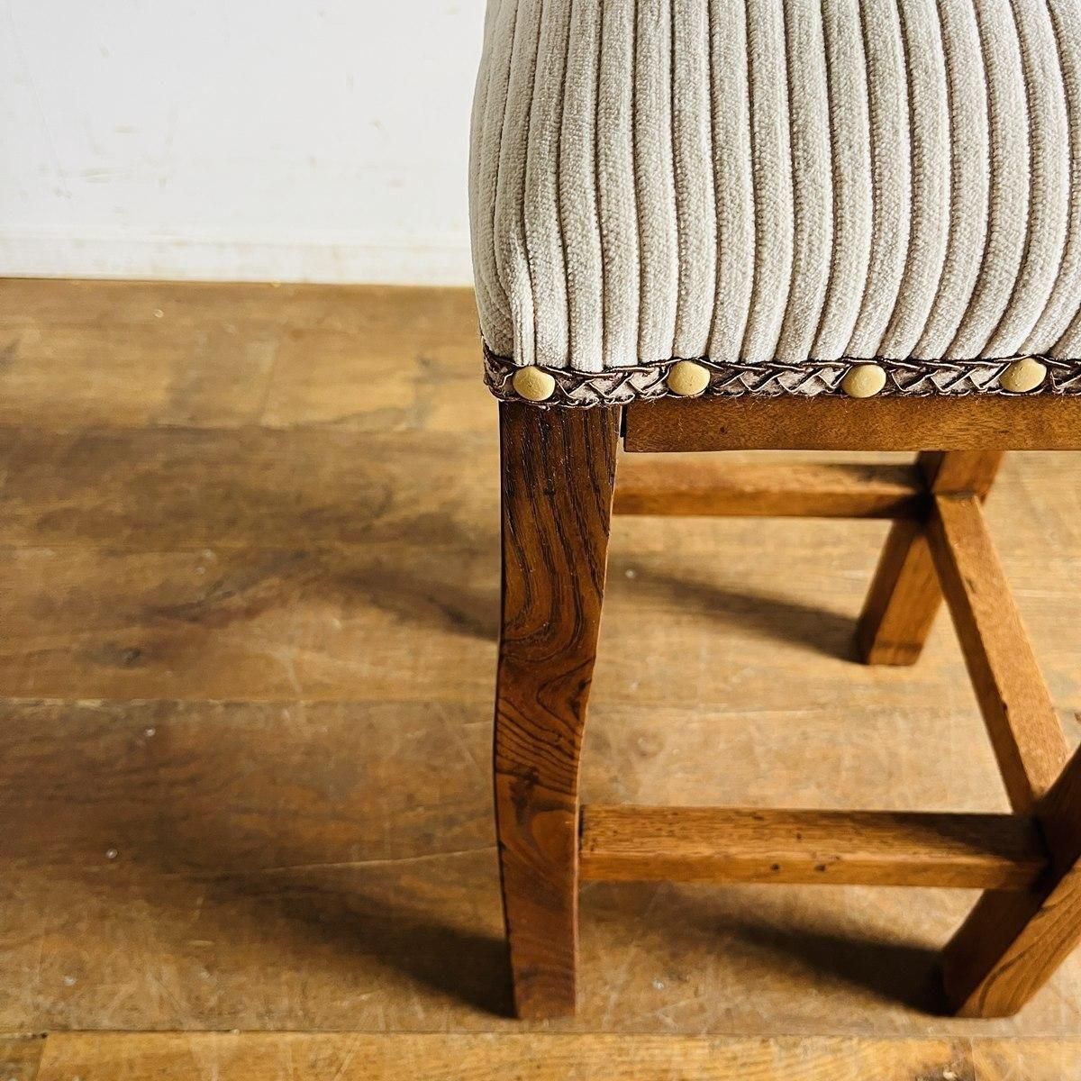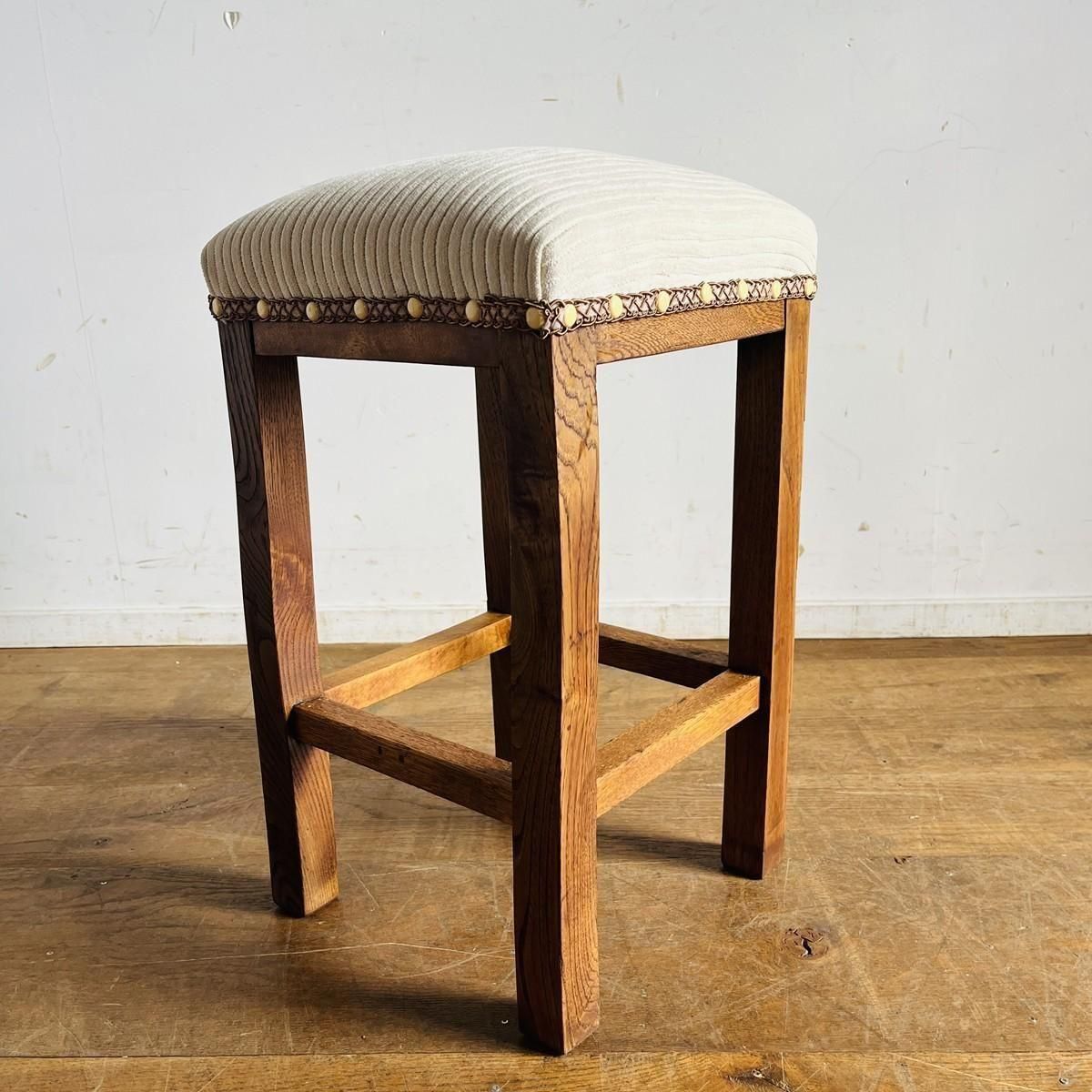 ベルギー製コーデュロイ生地を張りなおしたブナの正方形角スツール
