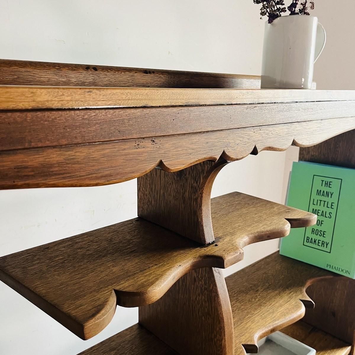 柔らかなラインを描いた棚板が優しい印象のオープンシェルフ