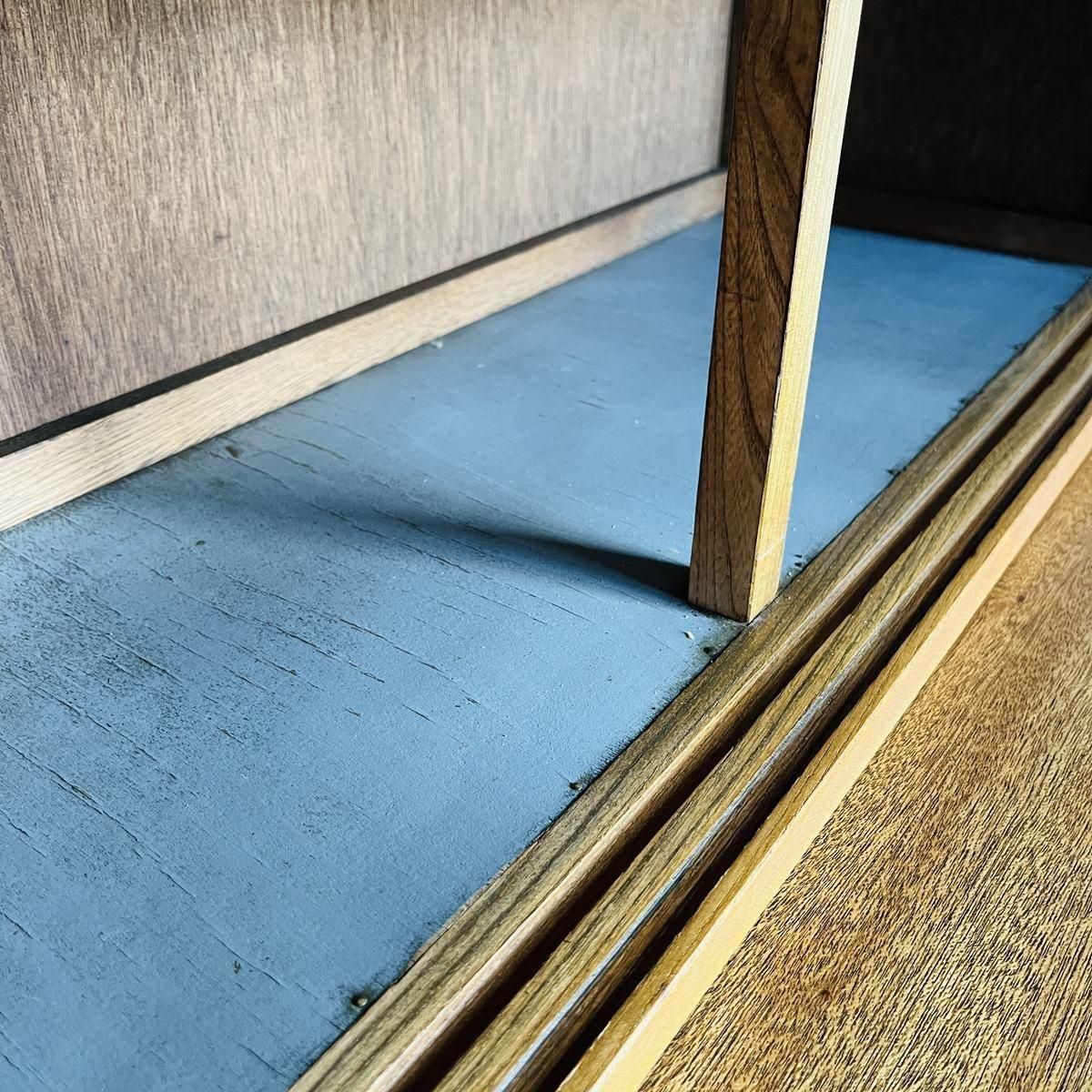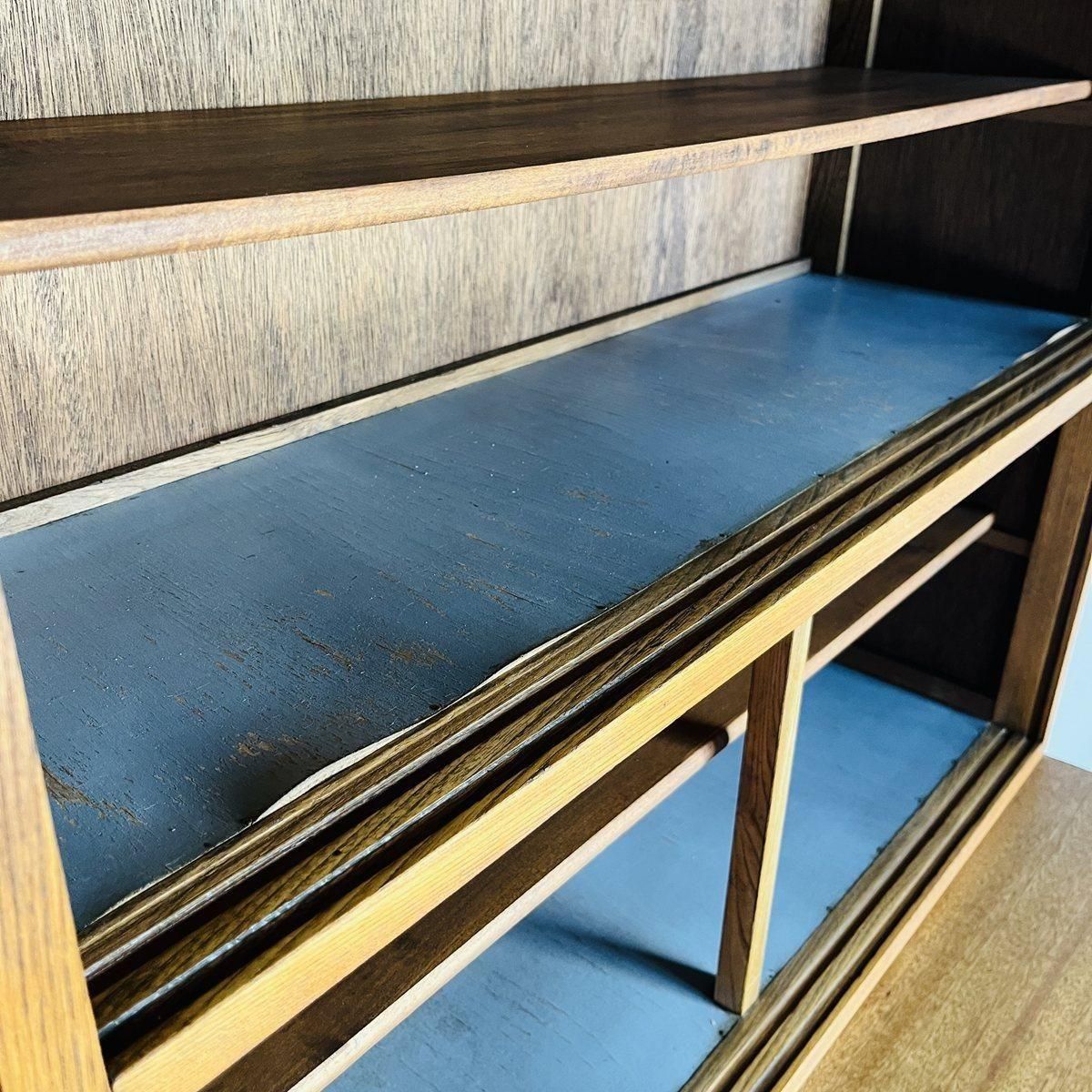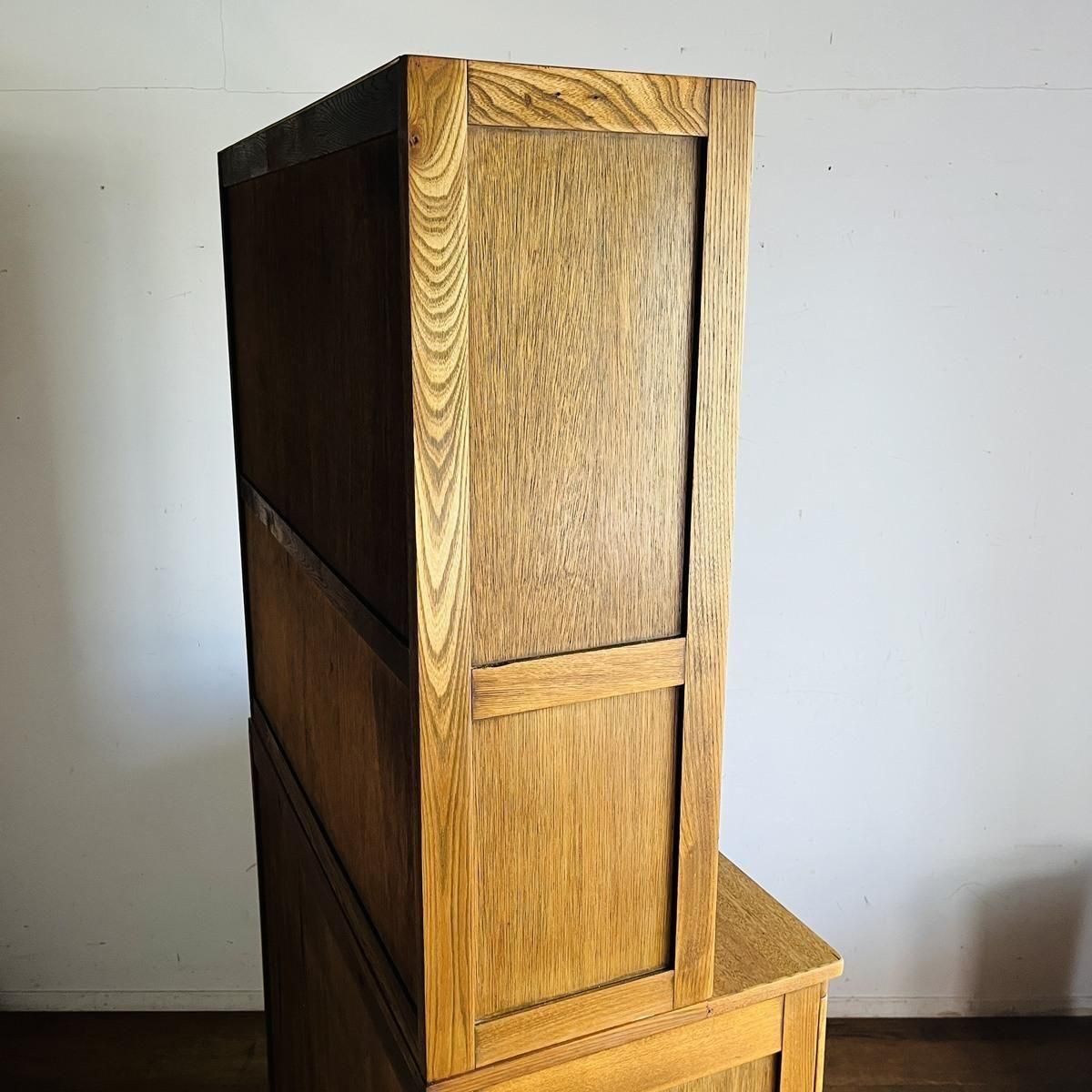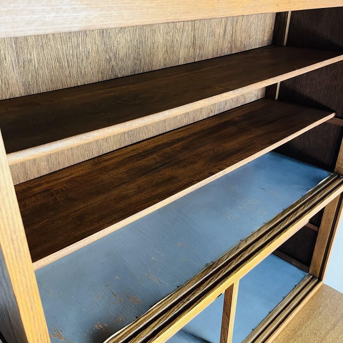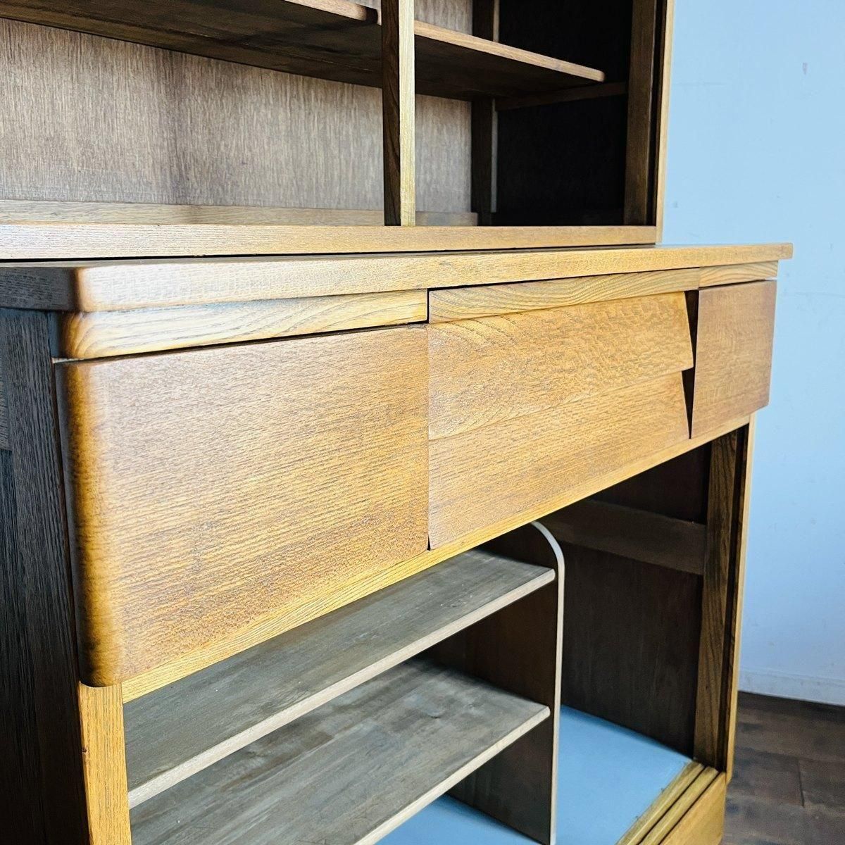 上段のガラス戸や引き出し、下段の収納スペースも実用的で、器や台所まわりの物の収納にぴったりです。