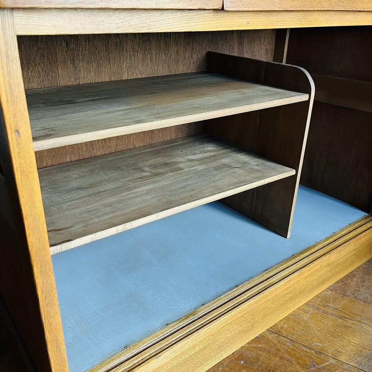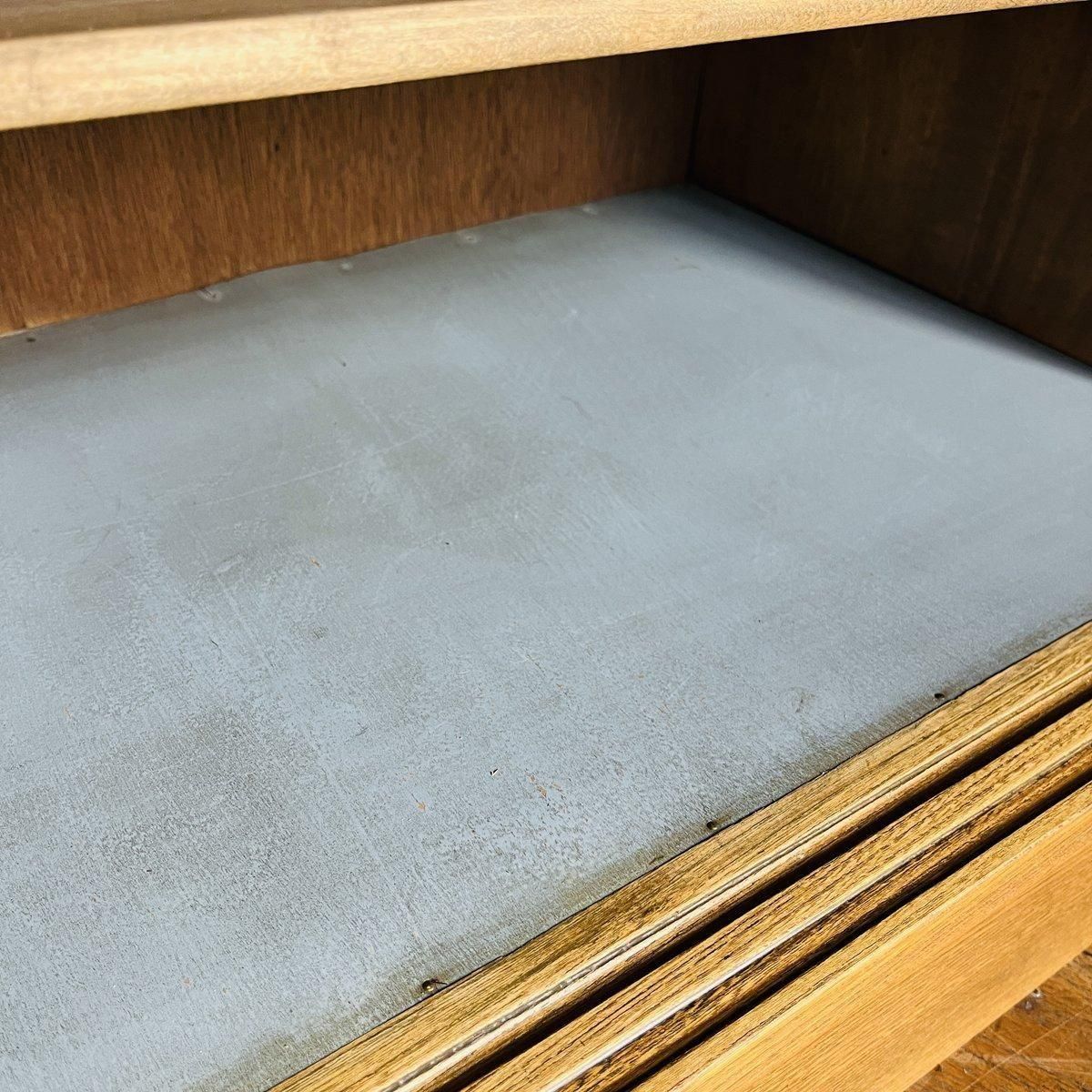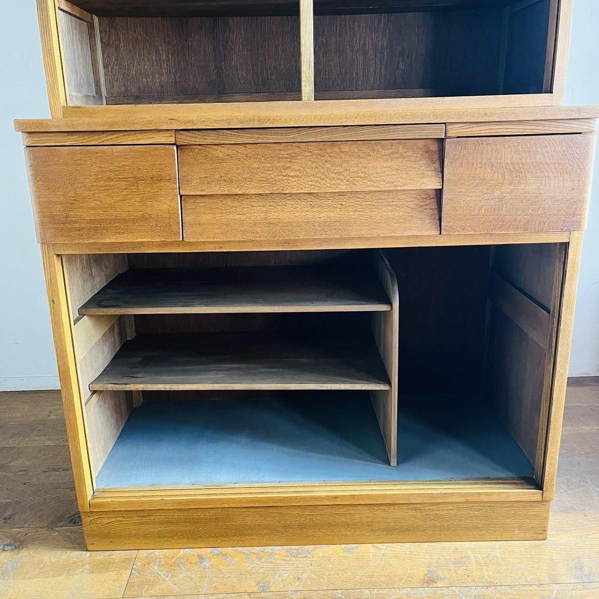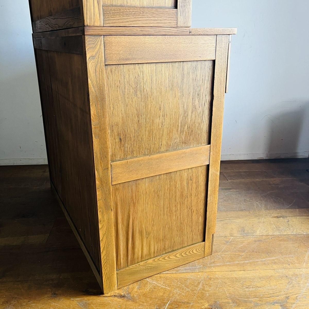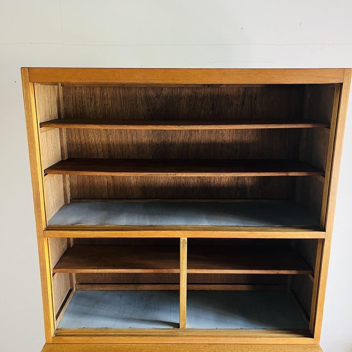 上段のガラス戸や引き出し、下段の収納スペースも実用的で、器や台所まわりの物の収納にぴったりです。