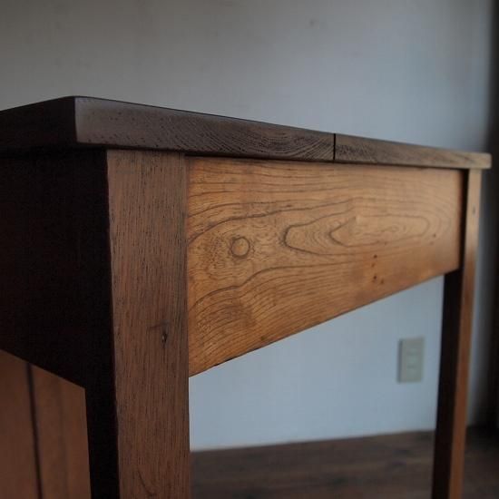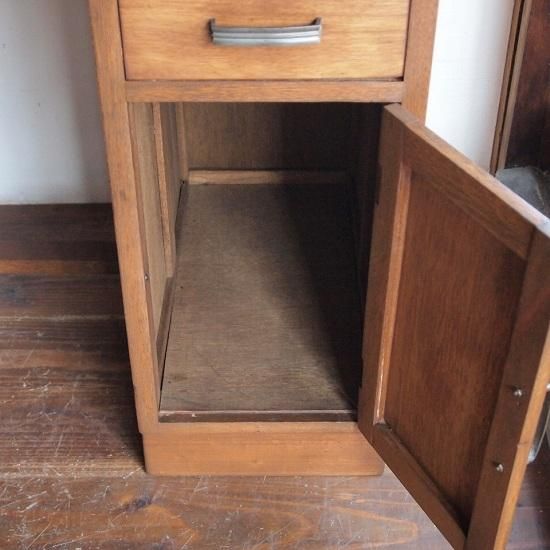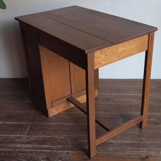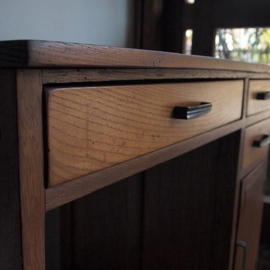 小ぶりなサイズの「片袖机」。落ち着いた心地よい印象をもち、優しい木地色です。3杯の引き出しとひらき戸棚のついたデザインで、小ぶりサイズなのでお子様にも使って頂けます。