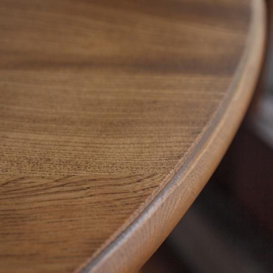 天板に象嵌細工が施された「丸ティーテーブル」。すっきりと気の利いいたきれいな印象。