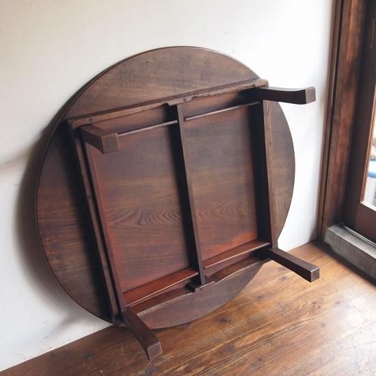 直径1040mm、大きいサイズ。天板は穏やかな温もりのある木地色、艶がありすてきな印象です。3〜4人で囲んで頂けます。ぐらつきもなく良い状態です。ちゃぶ台は折り畳めるので、邪魔にならないのが魅力的です。