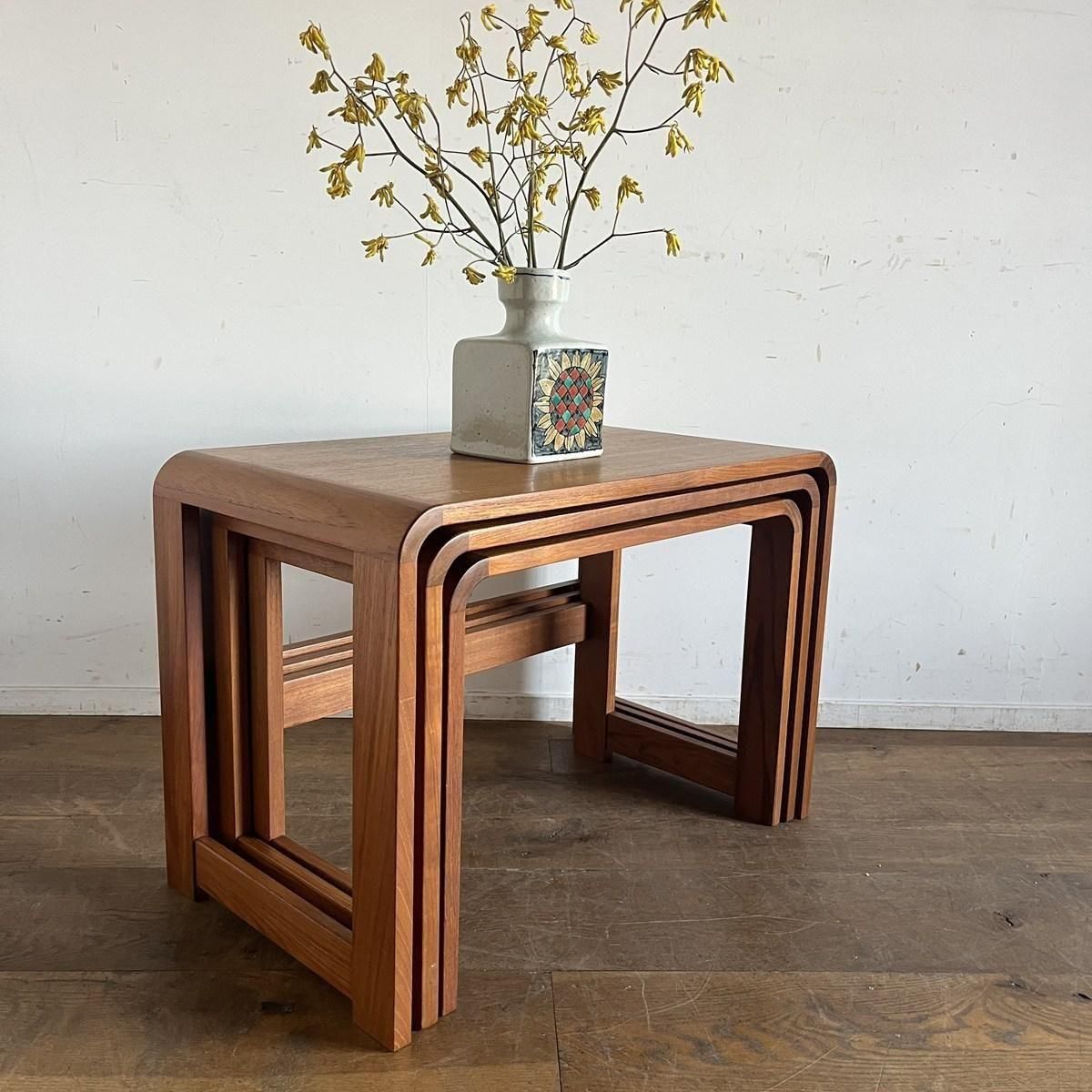 54,000円(税込59,400円)チーク材のやさしい木肌が美しい、北欧ヴィンテージの3段ネストテーブル -