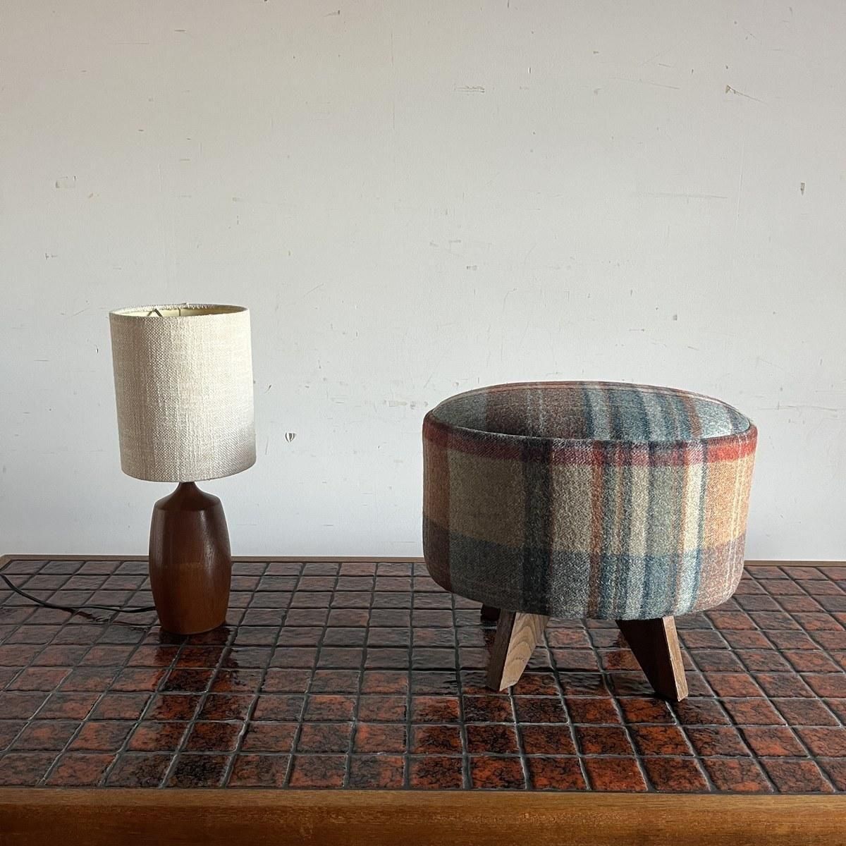 SOLD OUTイギリスのサンダーソン製の生地を張りなおした日本の古いスツール